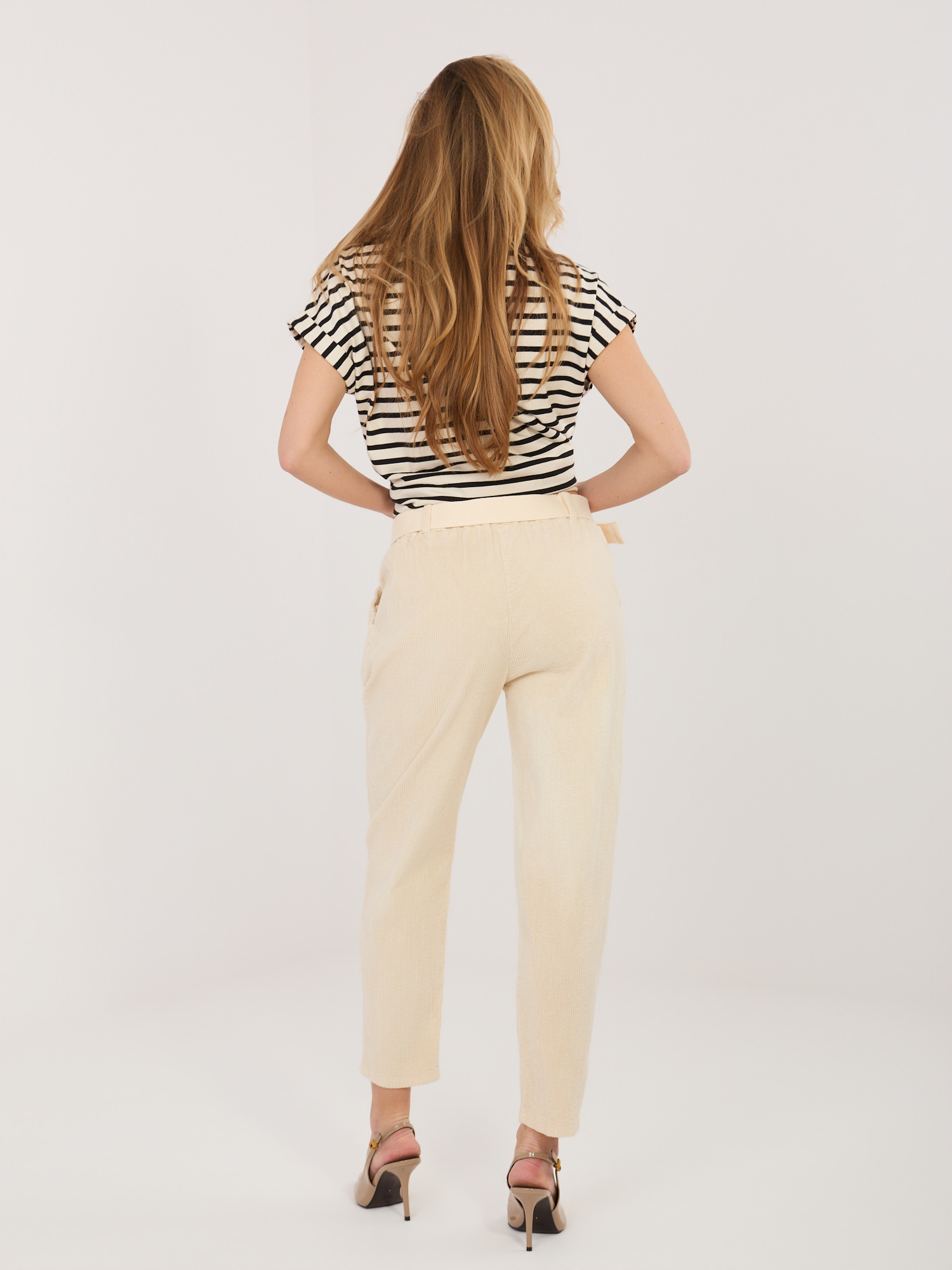 Jasnobeżowe sztruksowe spodnie cigarette z kieszeniami .