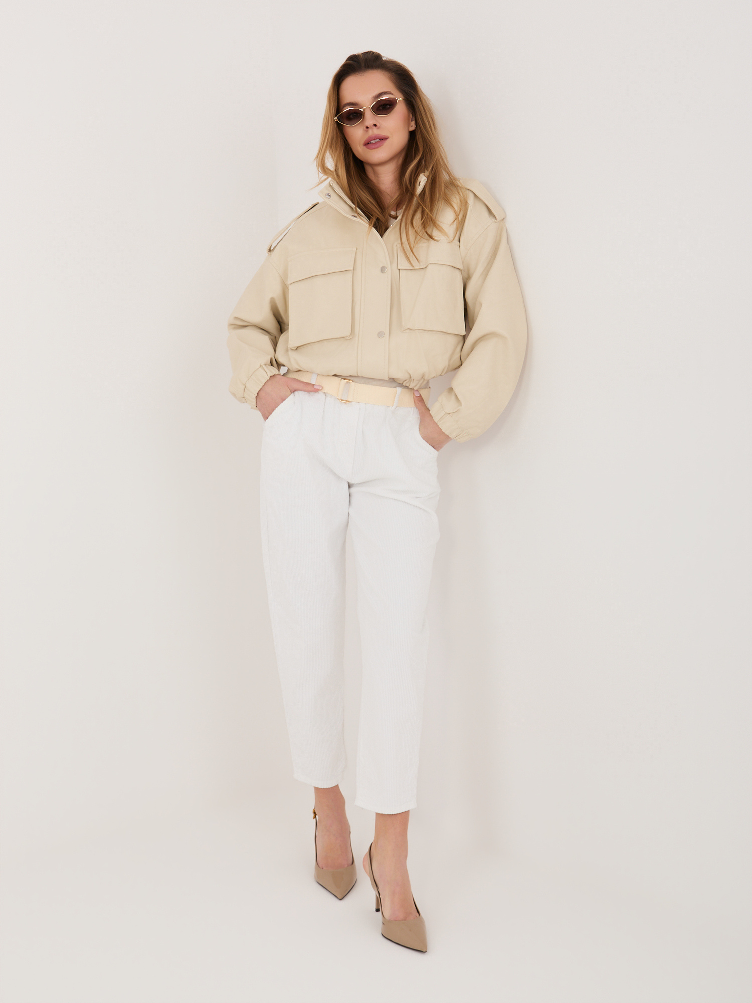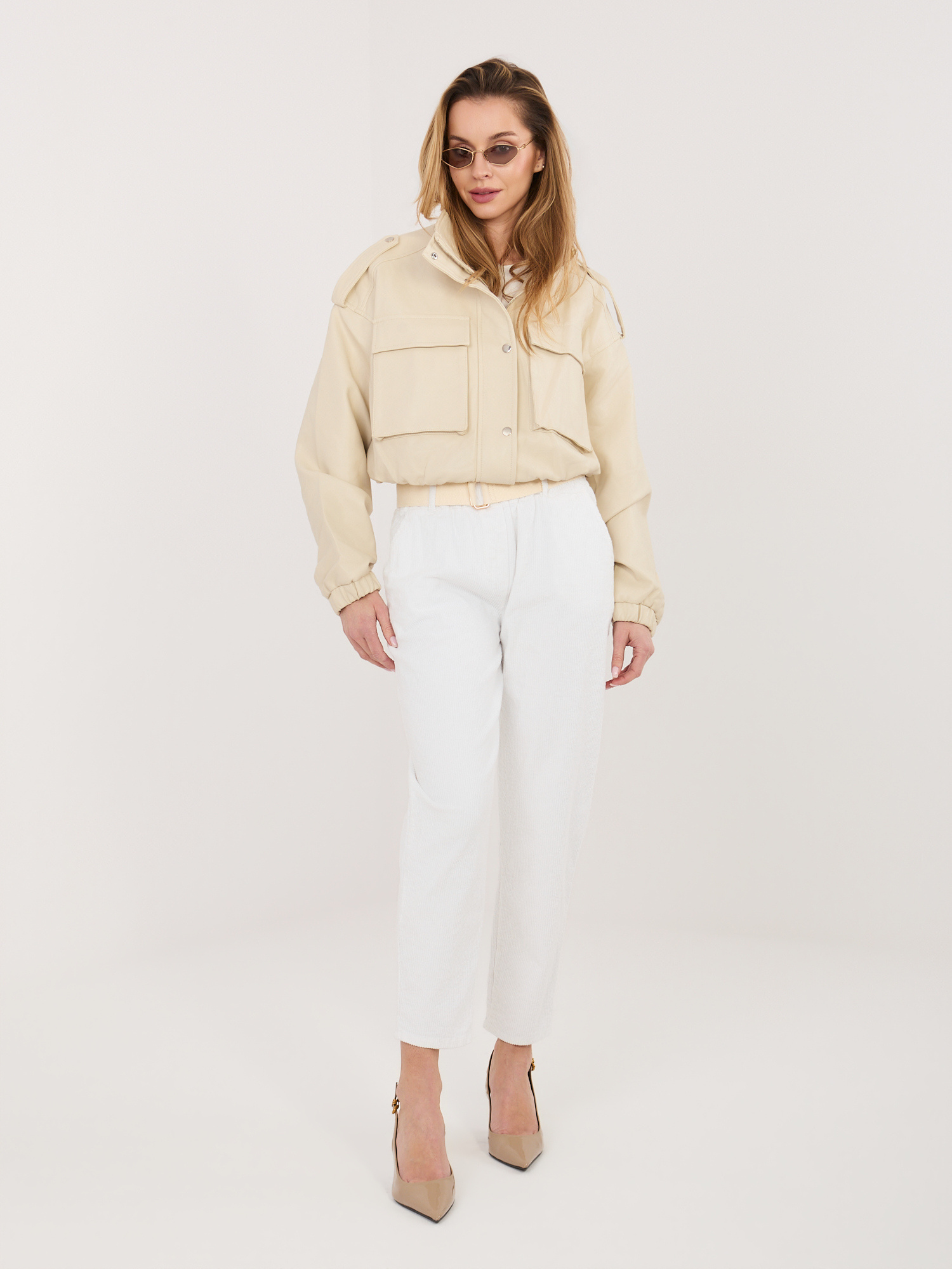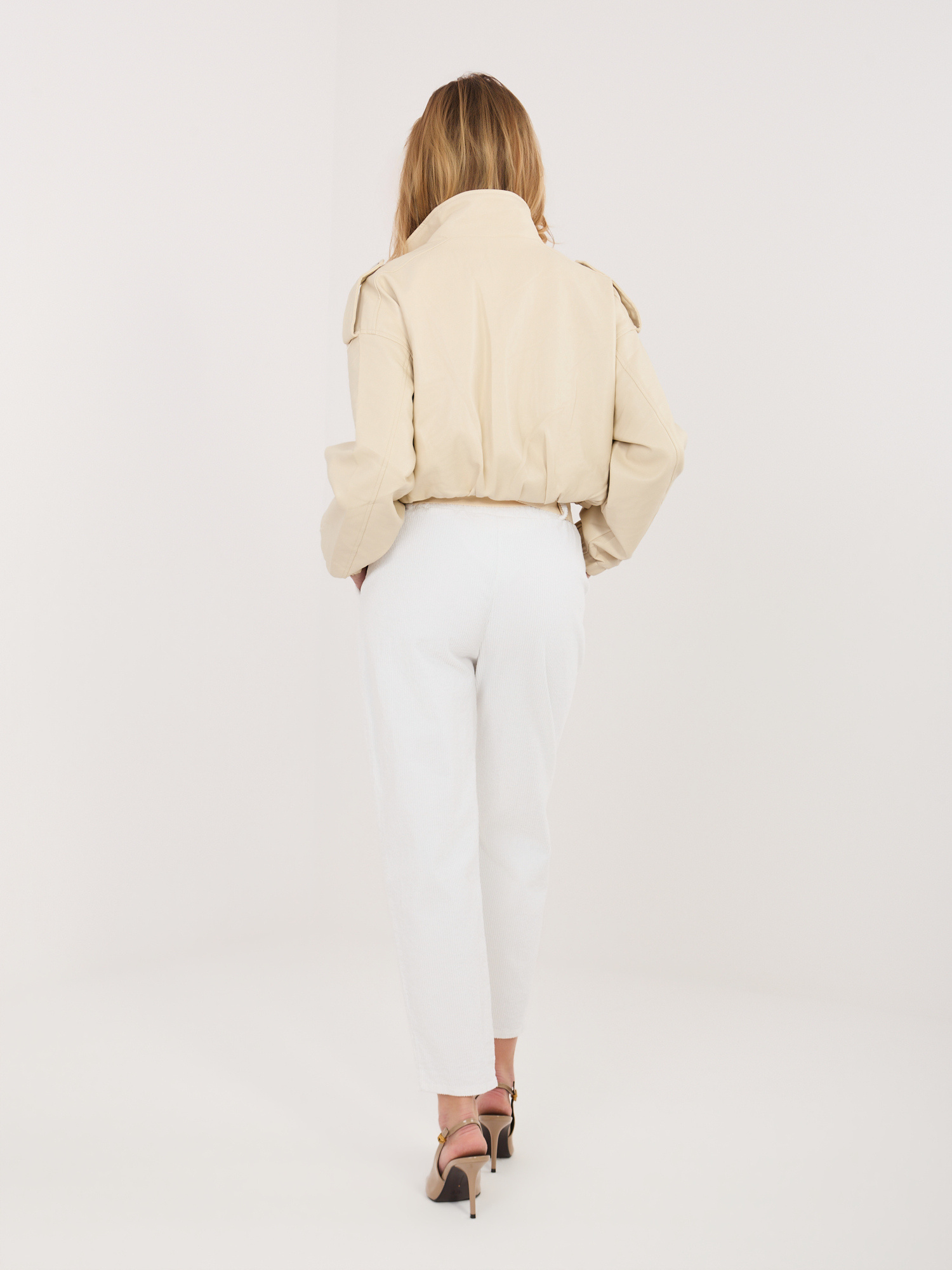 Ecru sztruksowe spodnie ze zwężaną nogawką