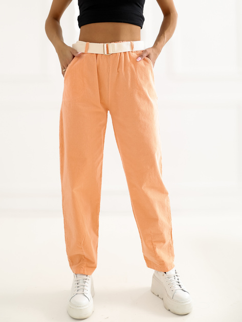 Jasnopomarańczowe sztruksowe spodnie z kieszeniami .