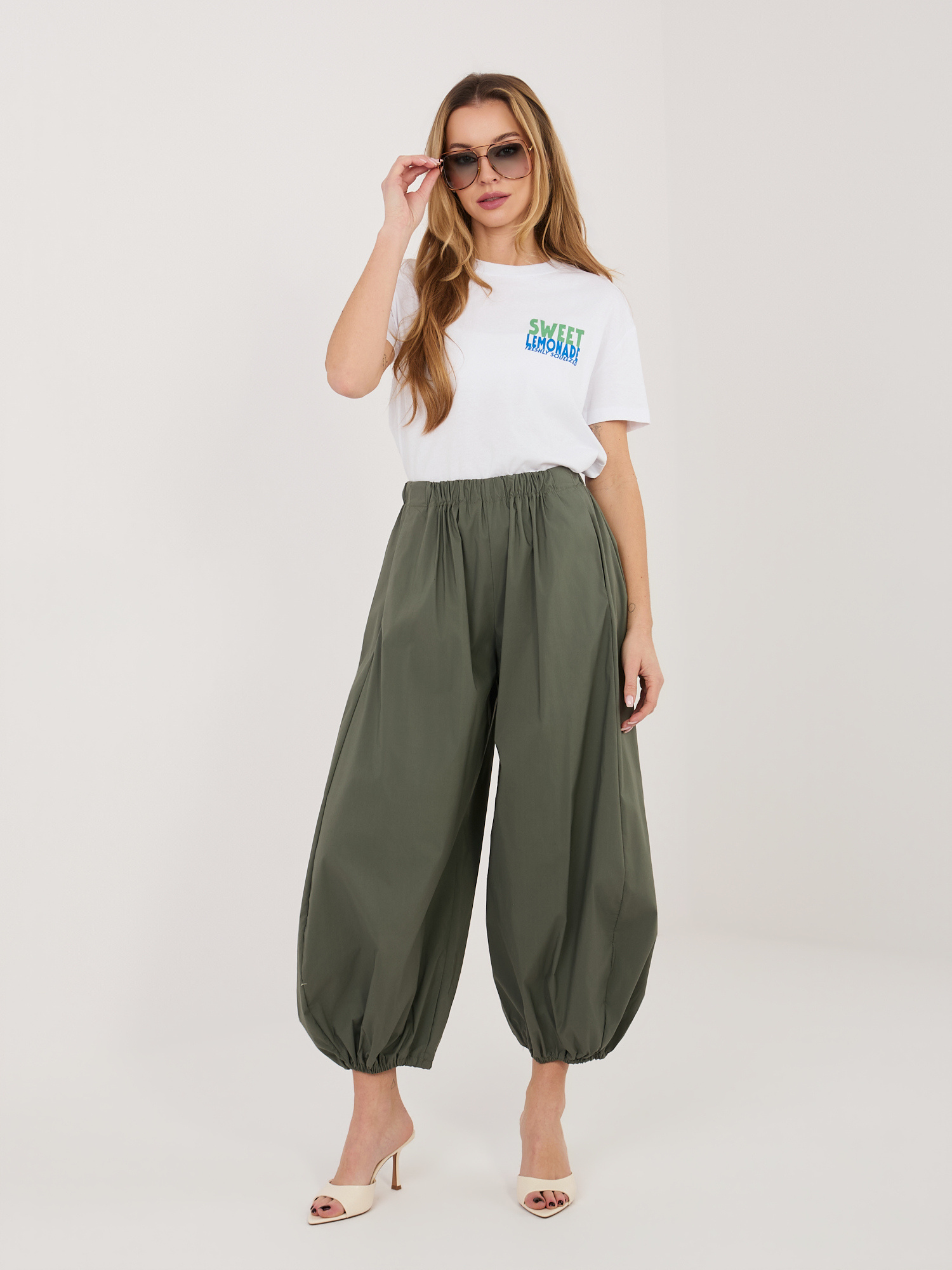 Khaki spodnie parachute bez zapięcia RUE PARIS .
