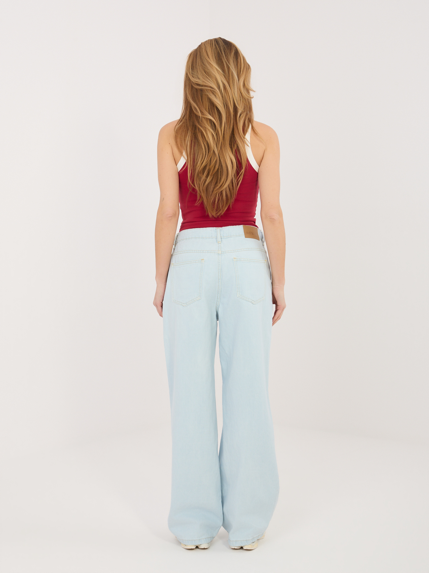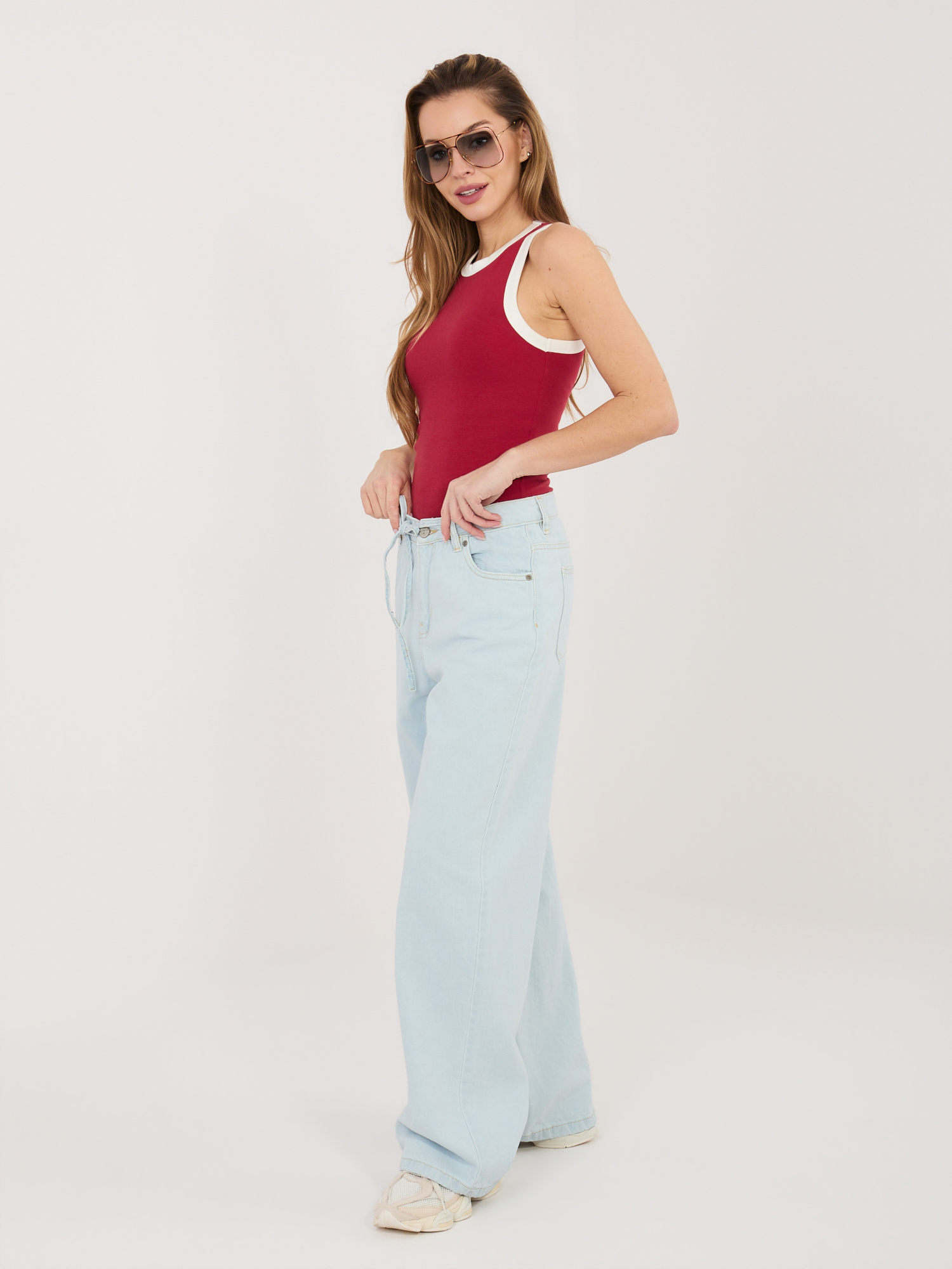 Jasnoniebieskie szerokie jeansy z wiązaniem SUBLEVEL .