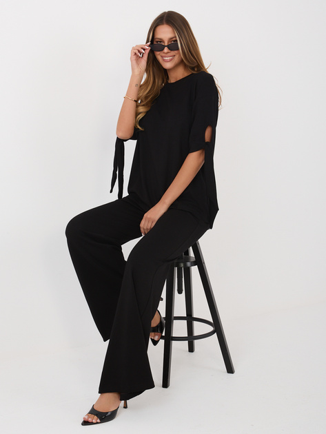 Czarny damski komplet z wiązaniem na rękawach .