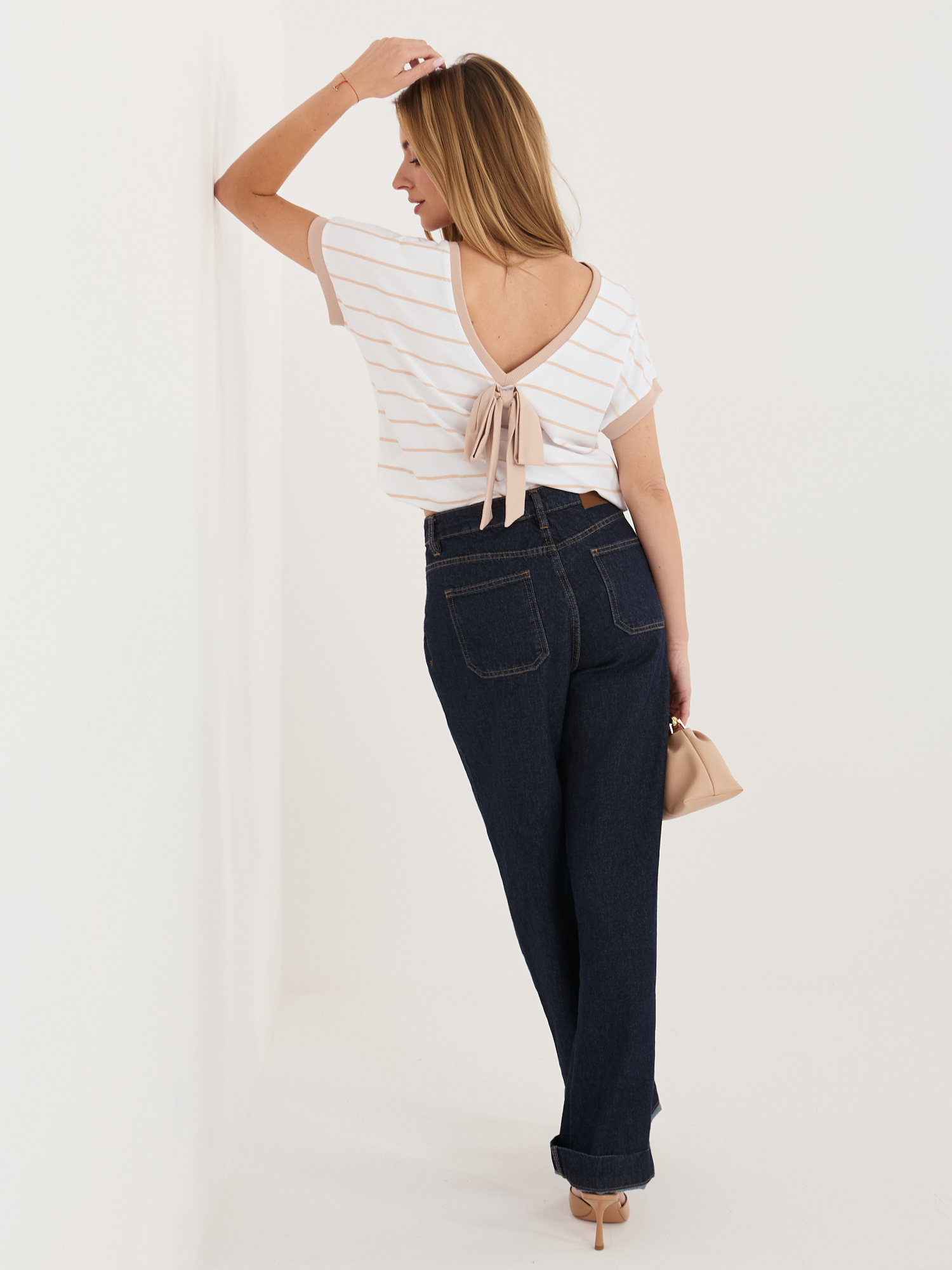 Ciemnobeżowa damska bluzka z kokardą na plecach .