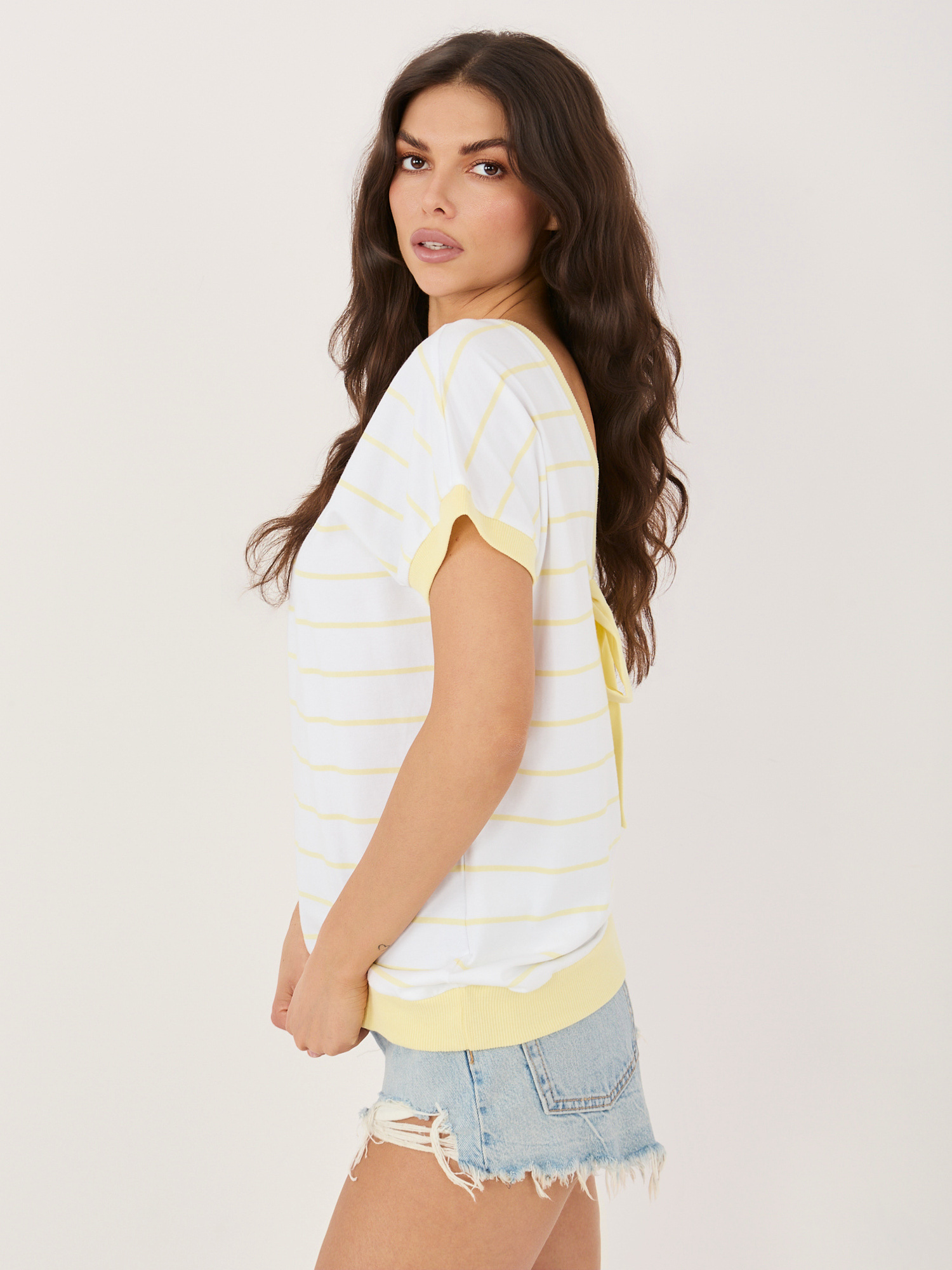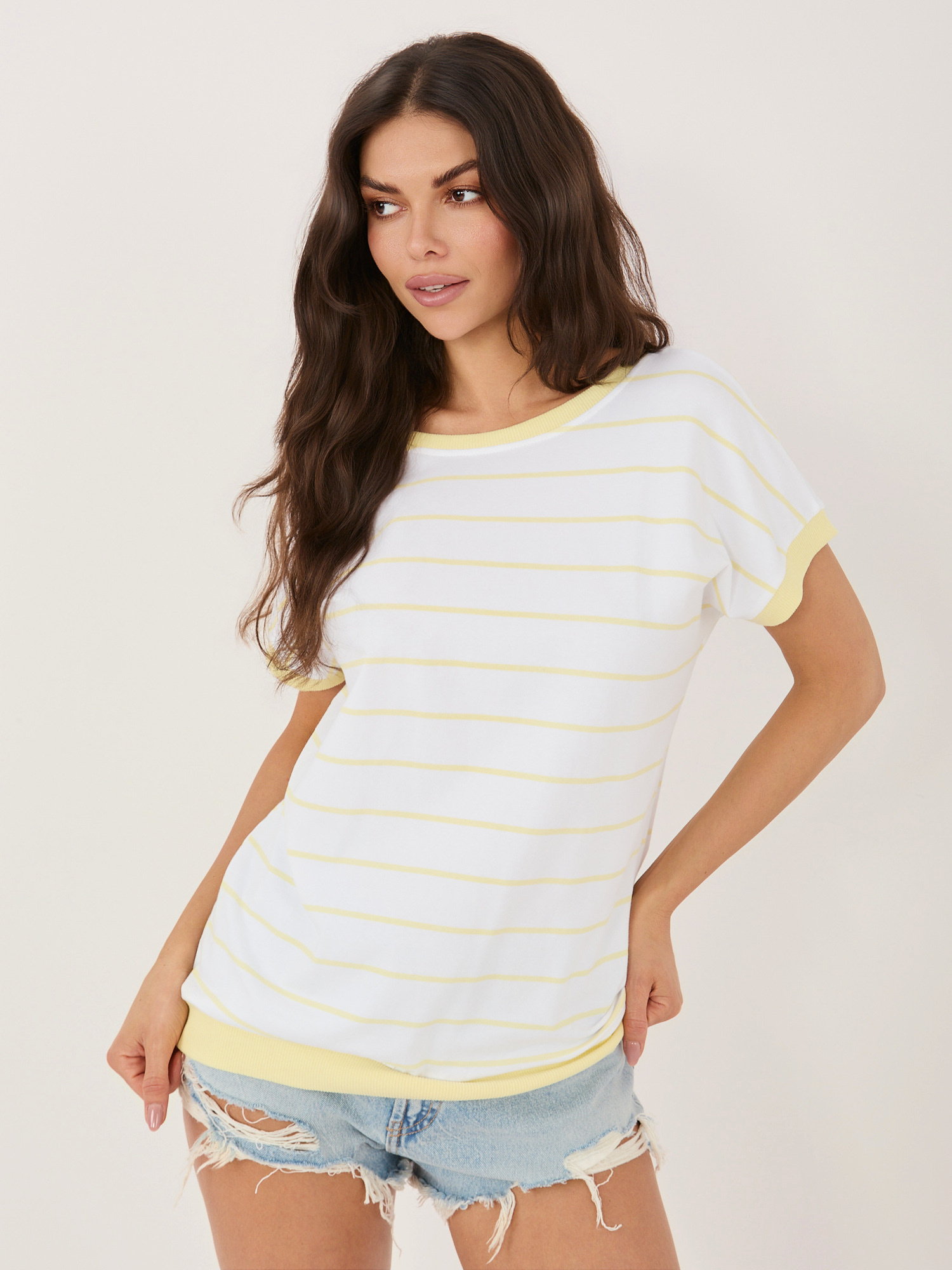 Jasnożółta bawełniana bluzka w paski .