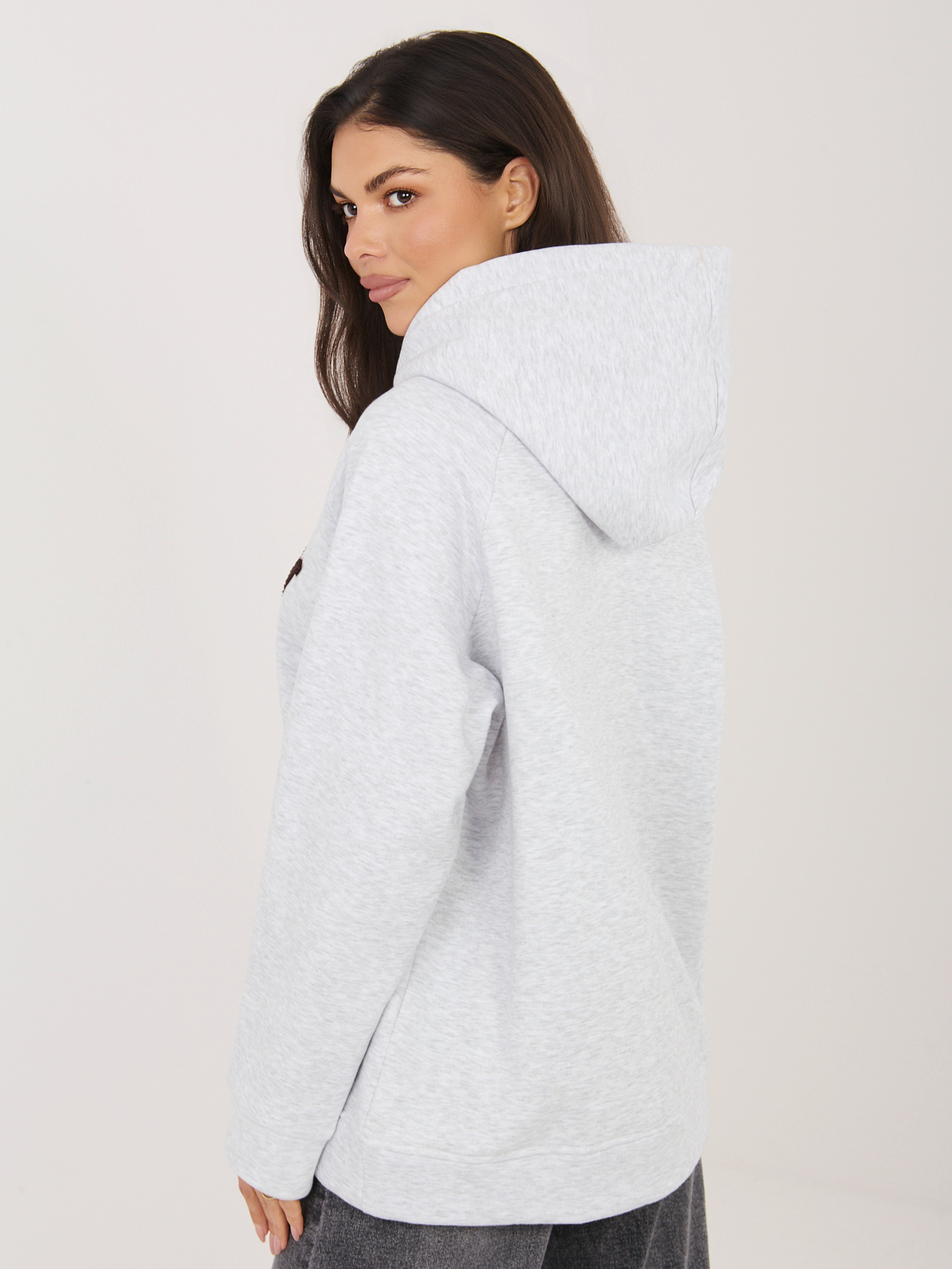 Jasnoszara melanżowa ocieplana bluza z kapturem RUE PARIS .
