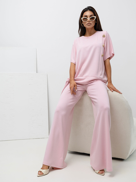 Jasnoróżowy damski komplet z ozdobnym wiązaniem .