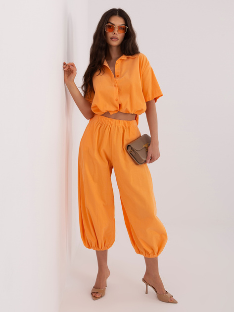 Jasnopomarańczowe sztruksowe spodnie od kompletu