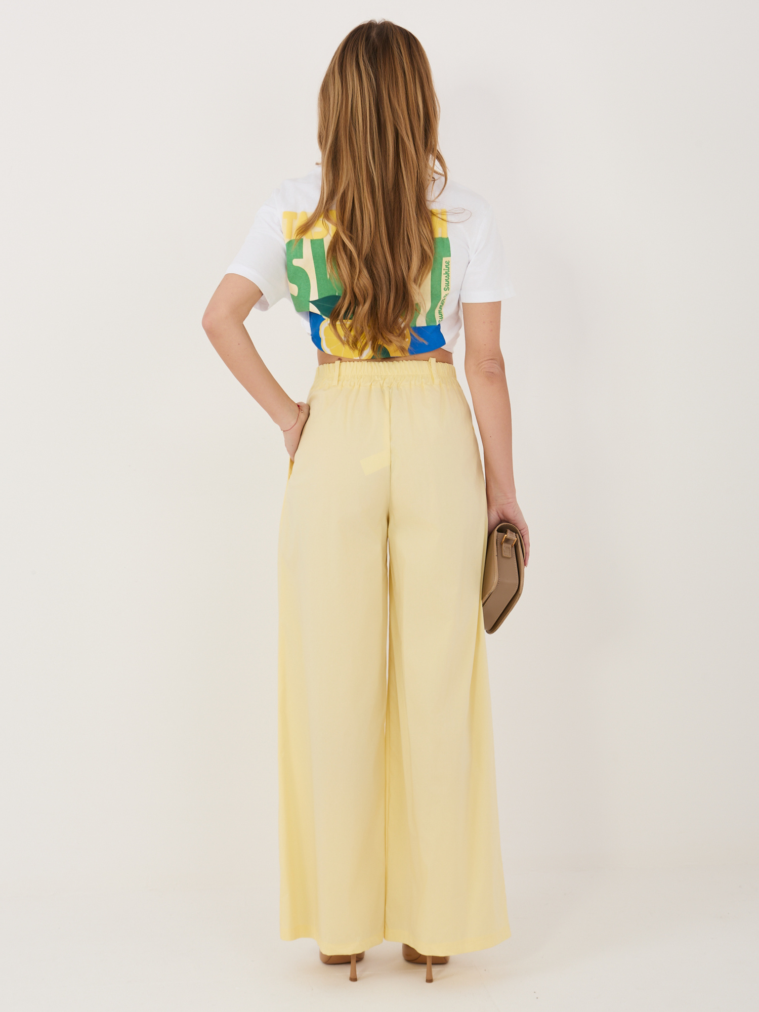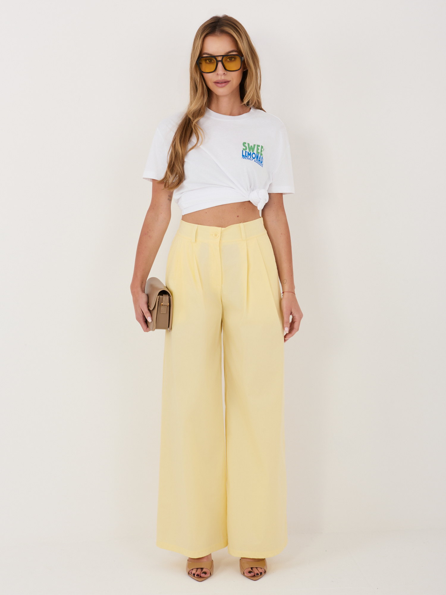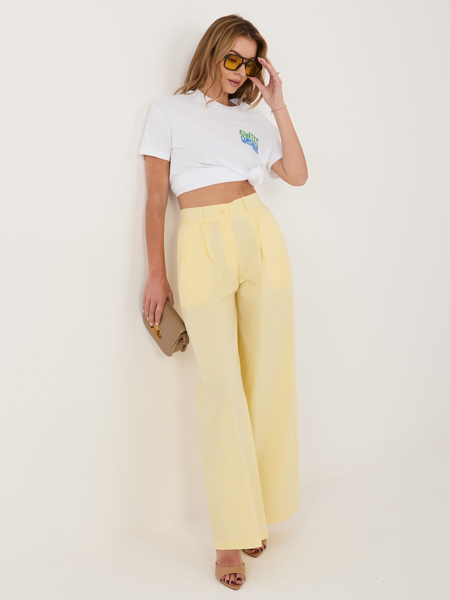 Jasnożółte damskie spodnie palazzo z kieszeniami RUE PARIS .