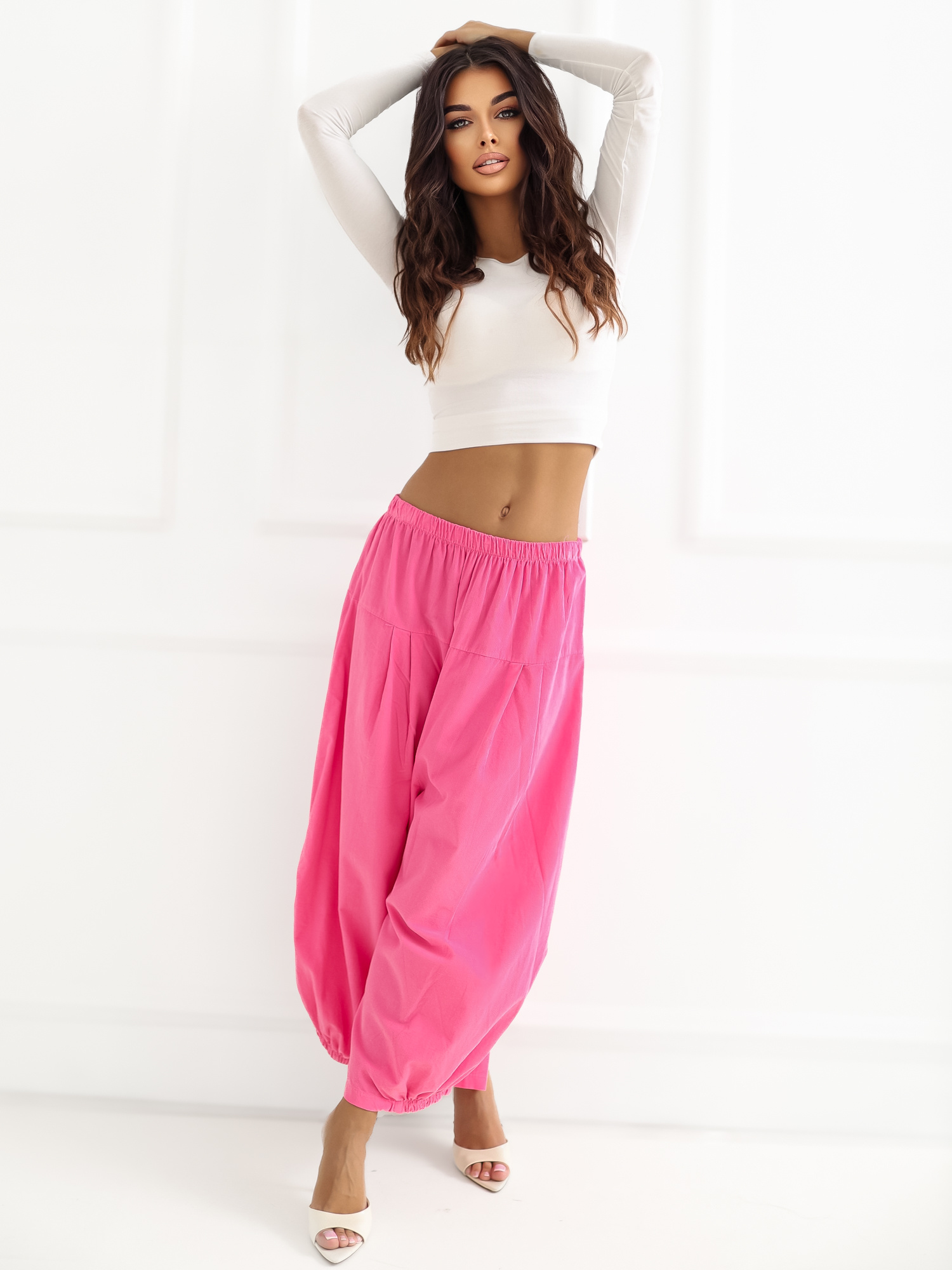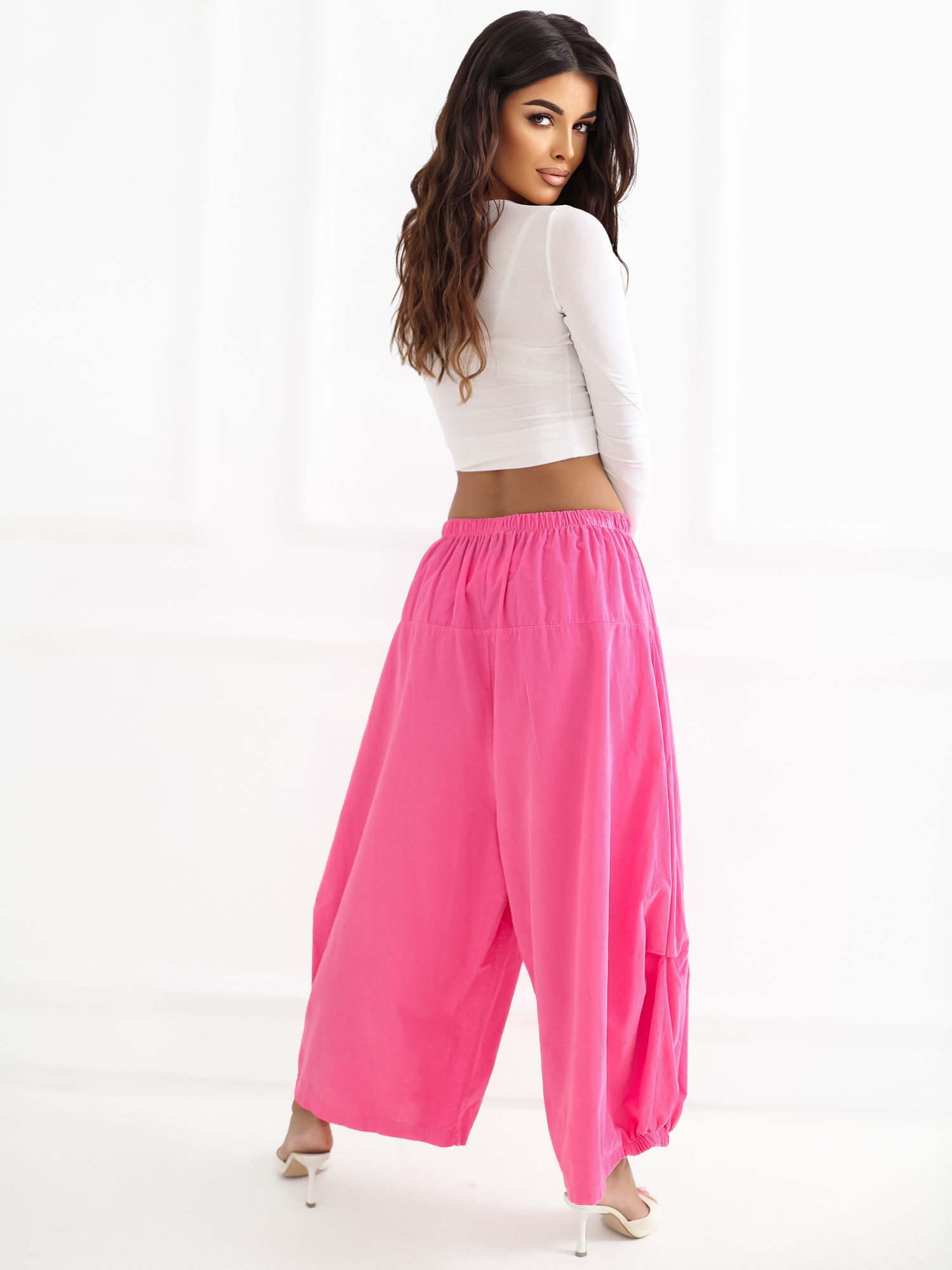 Ciemnoróżowe sztruksowe spodnie alladynki