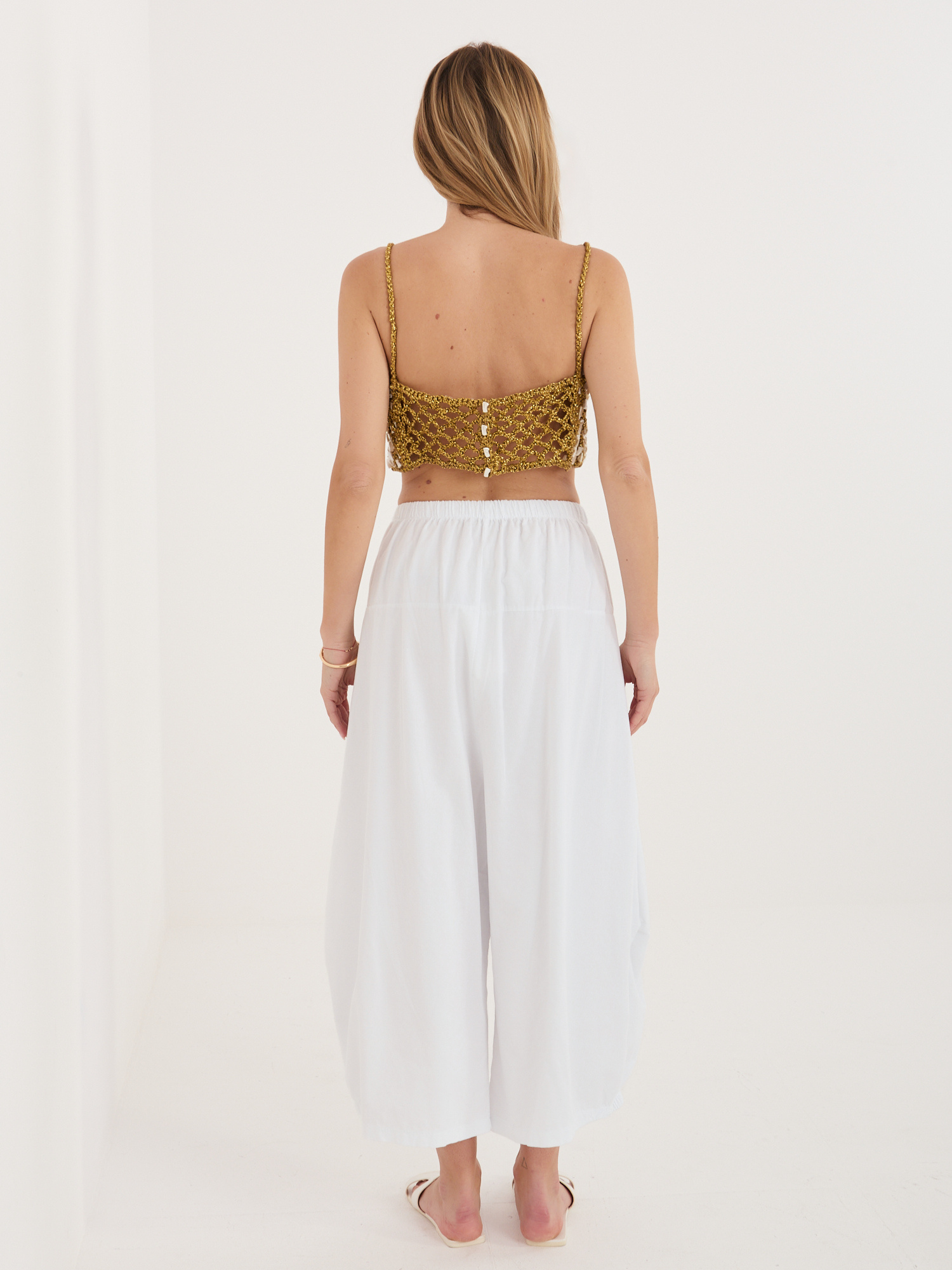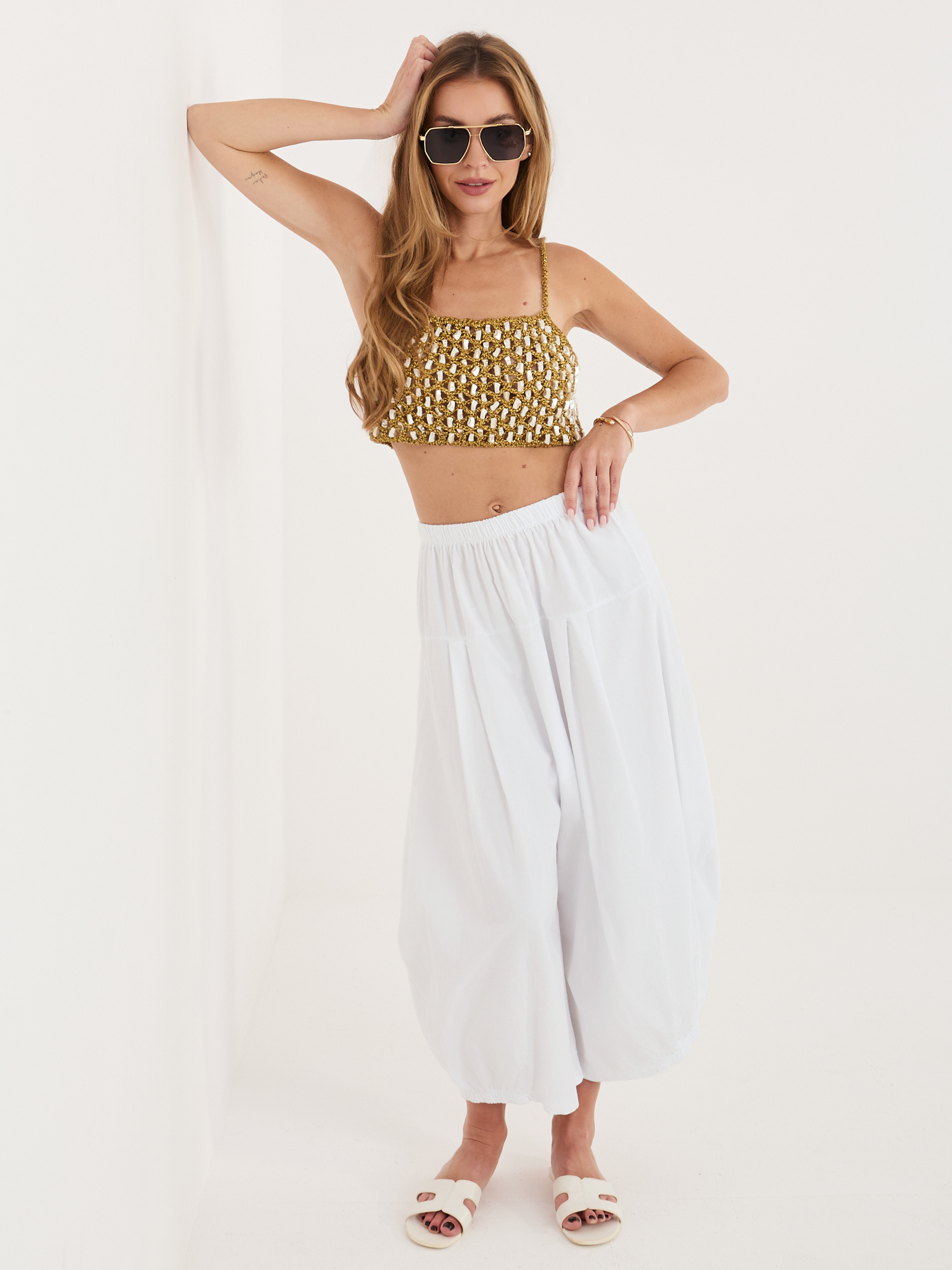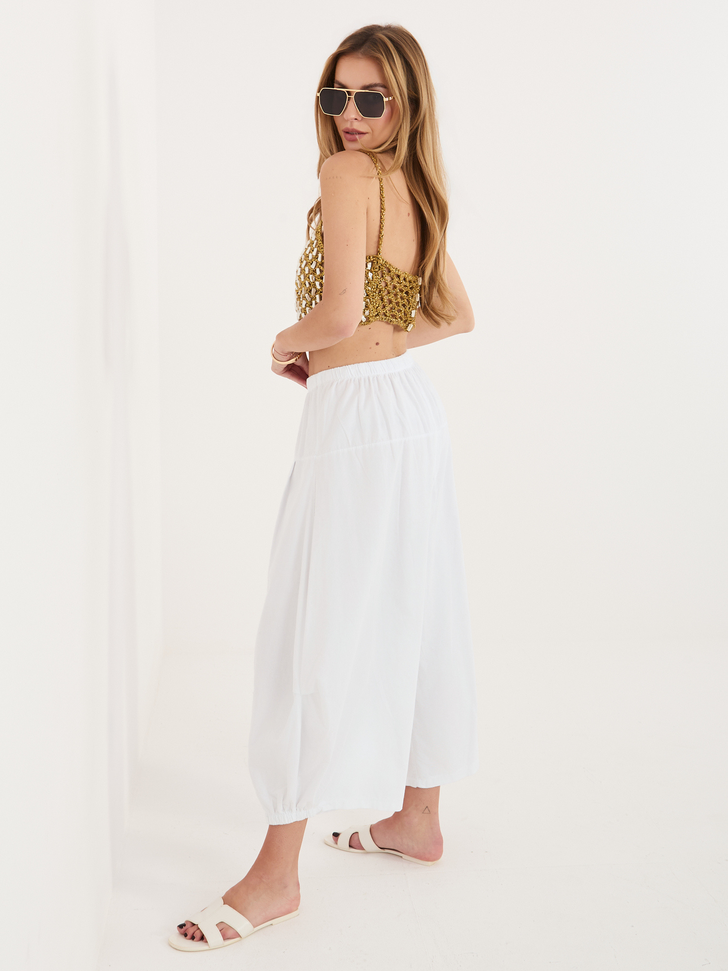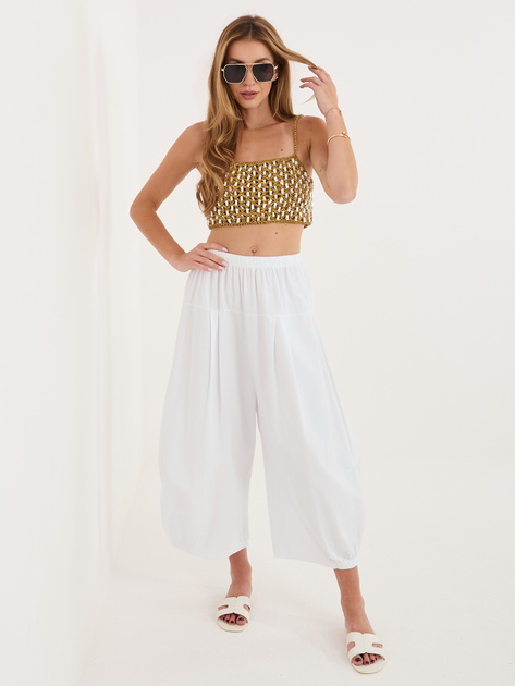 Białe sztruksowe spodnie alladynki