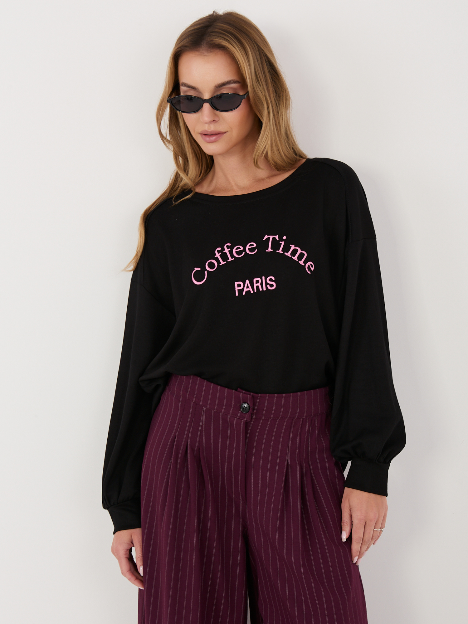 Czarna damska bluza o kroju oversize RUE PARIS .