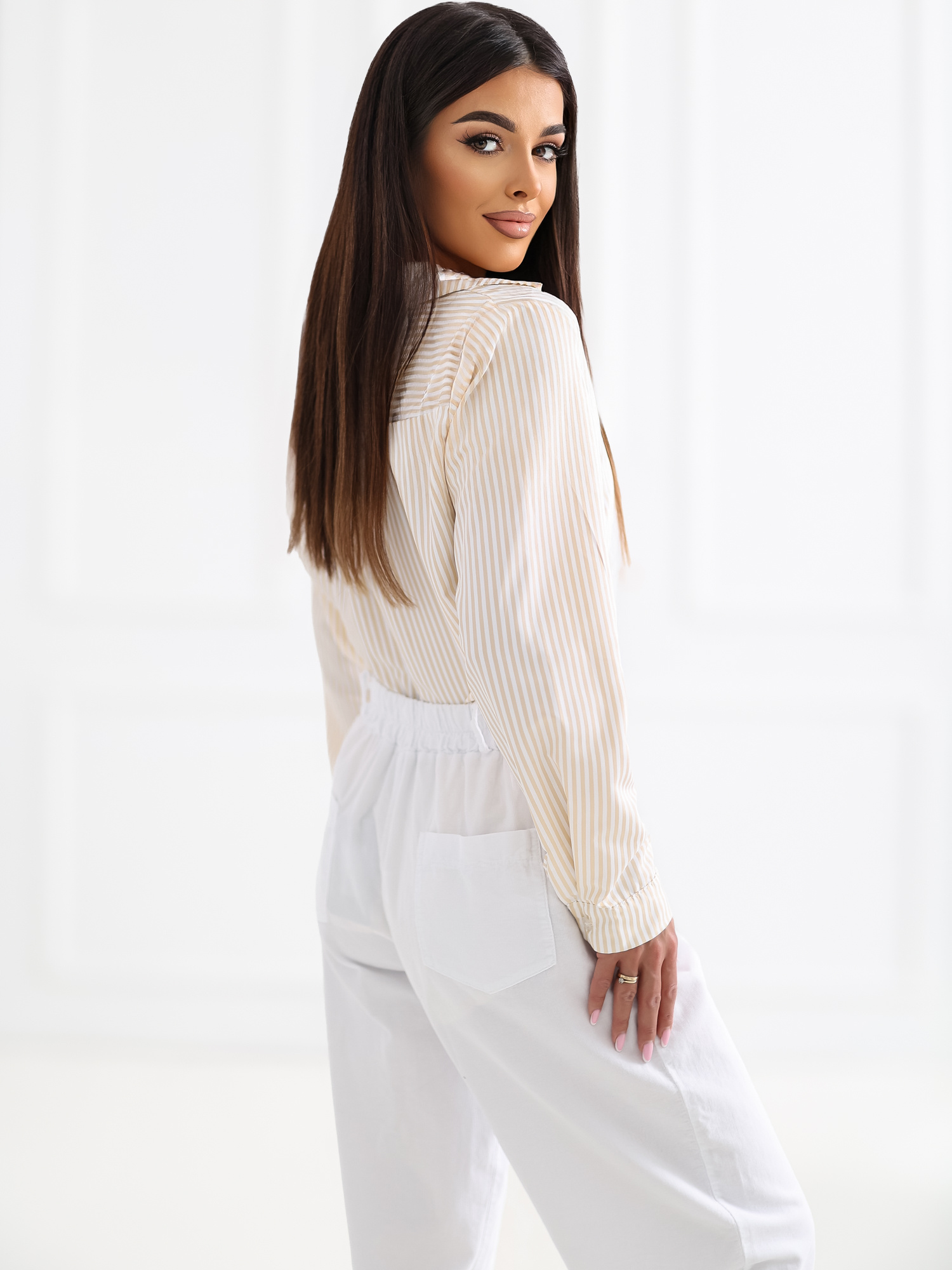 Beżowa damska koszula w paski