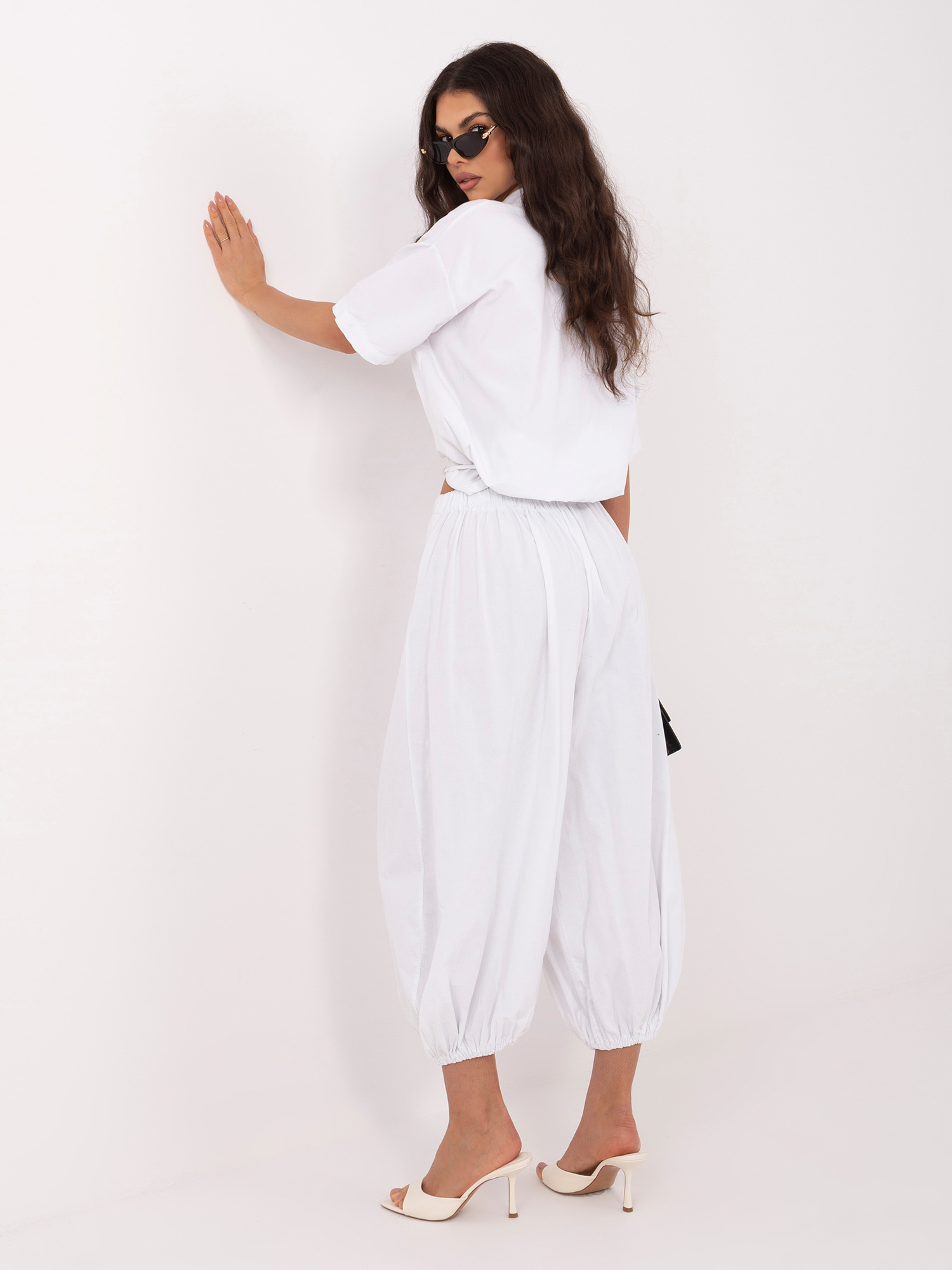 Białe spadochronowe spodnie z sztruksu .