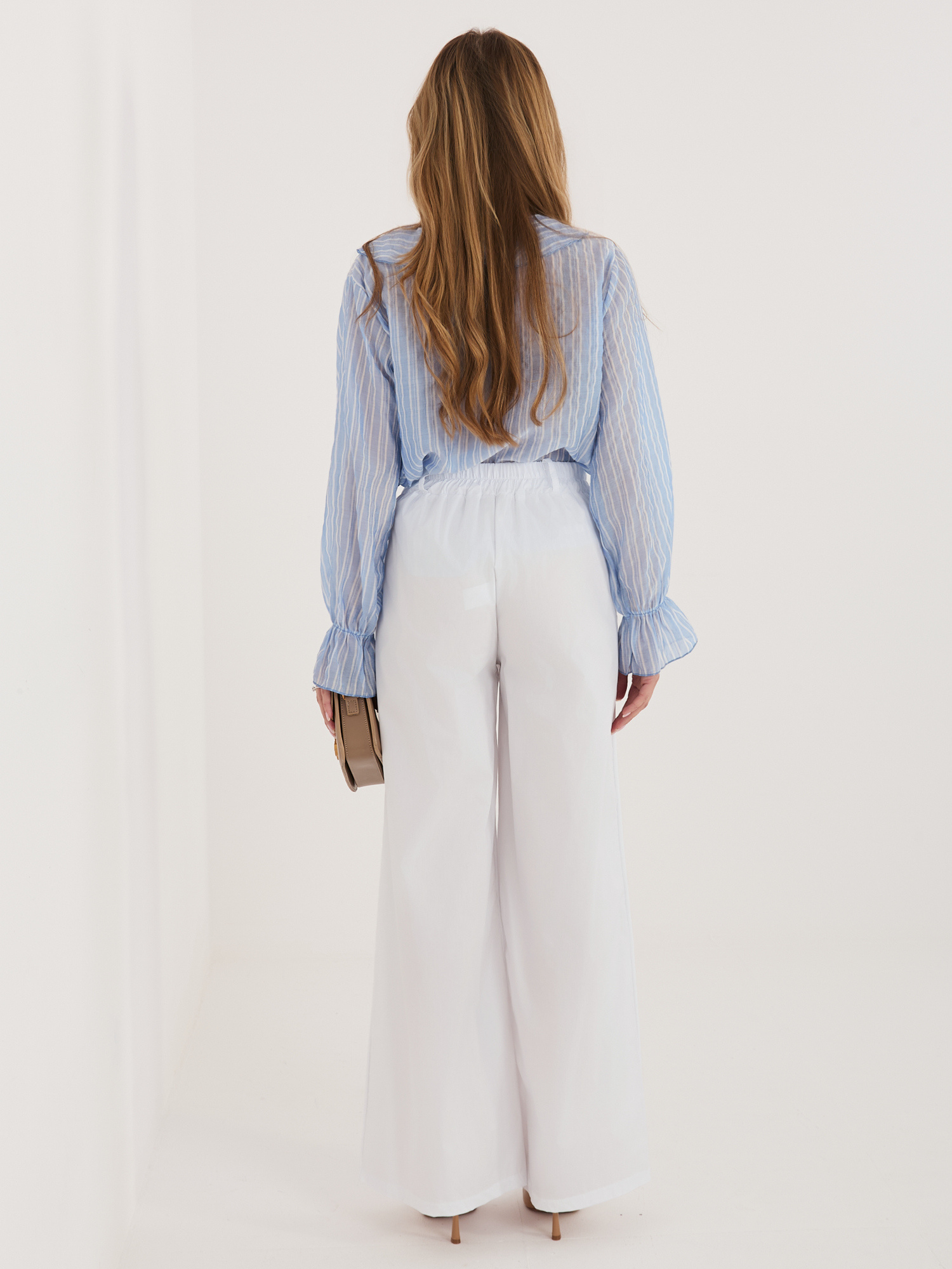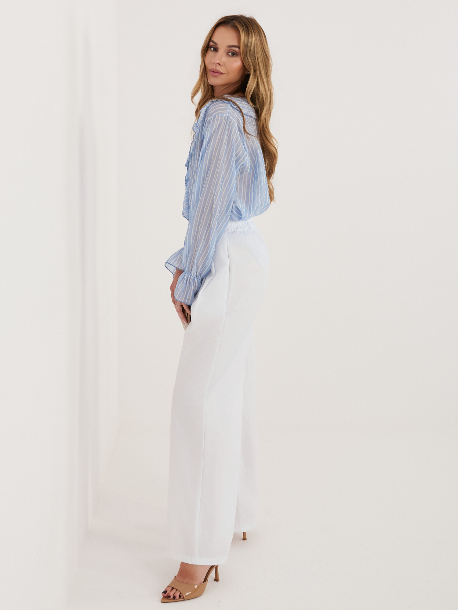 Białe damskie spodnie palazzo z zakładkami RUE PARIS .