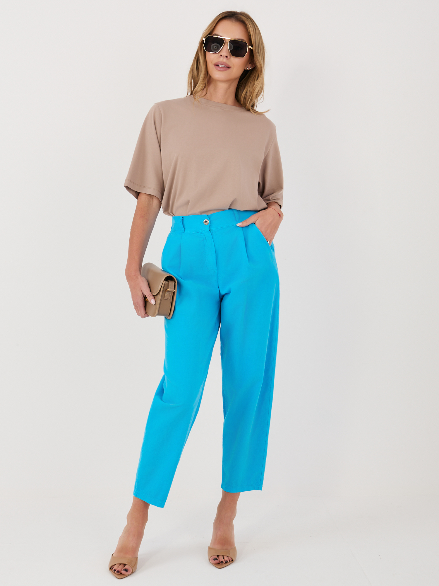 Niebieskie sztruksowe spodnie z nogawką 7/8 RUE PARIS .