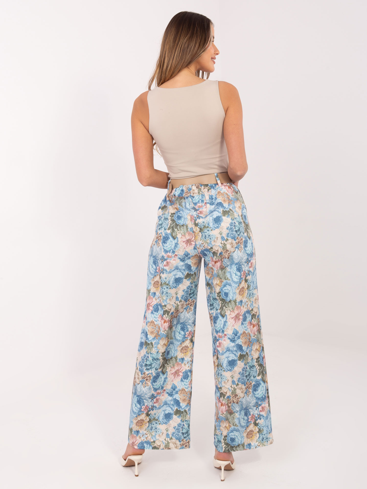 Jasnoniebieskie garniturowe spodnie z paskiem RUE PARIS .