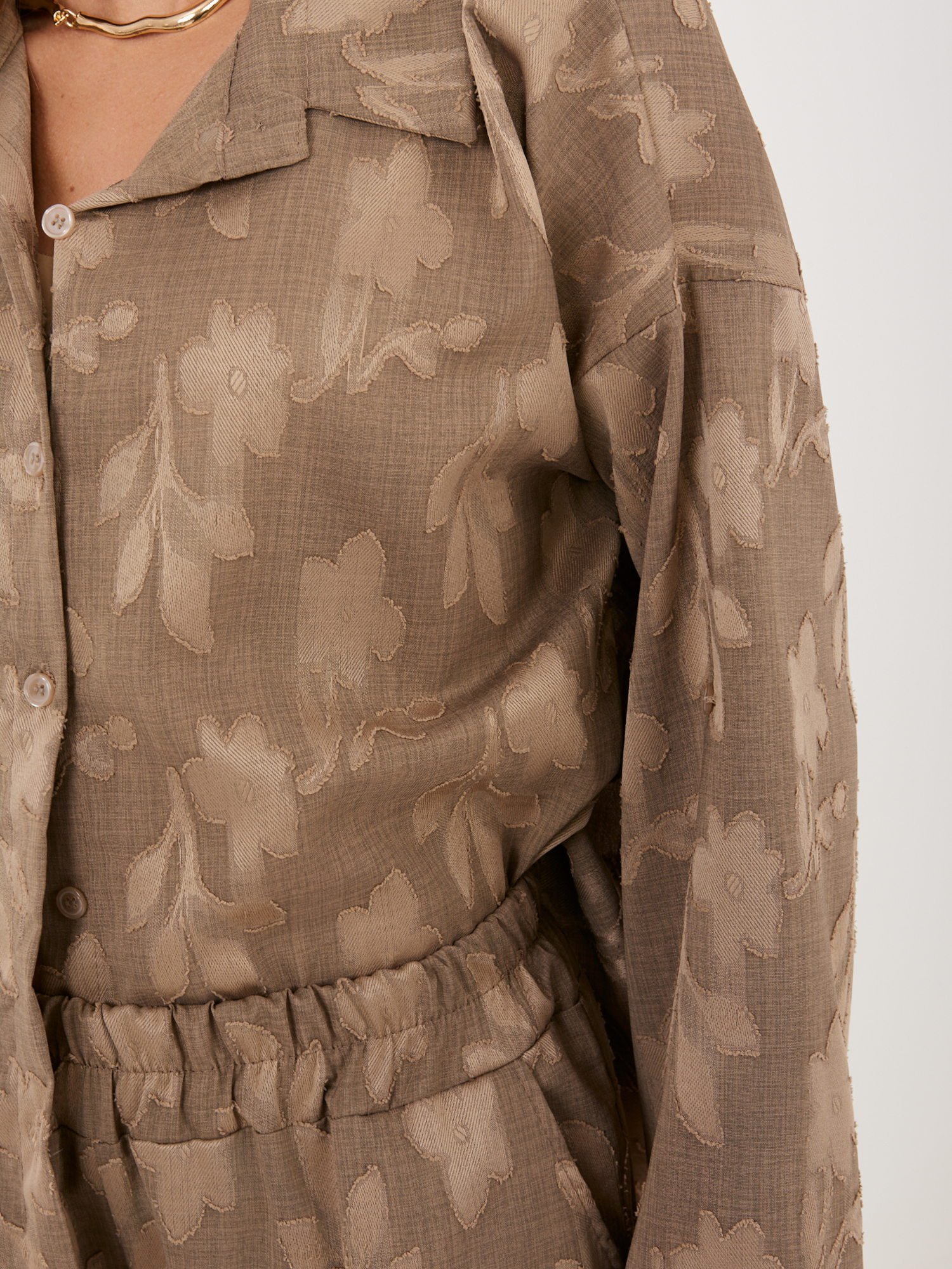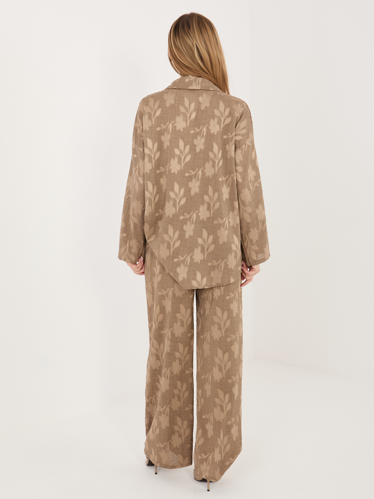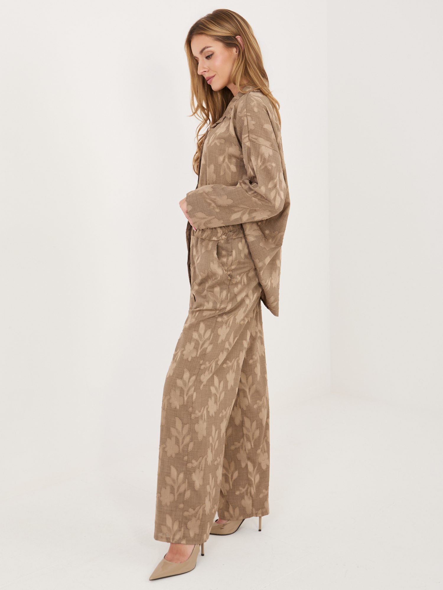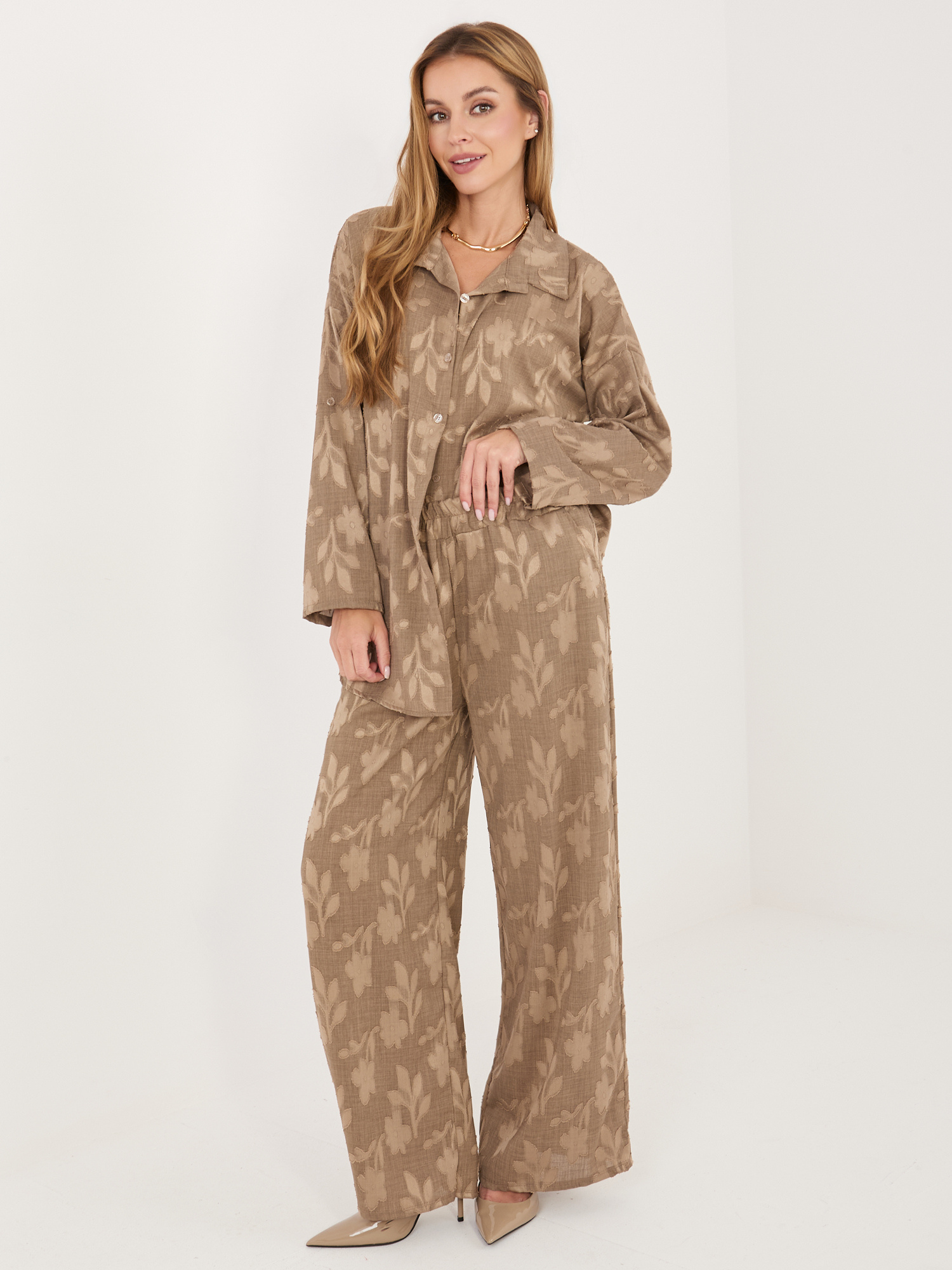 Ciemnobeżowy letni komplet z wypukłym wzorem RUE PARIS .