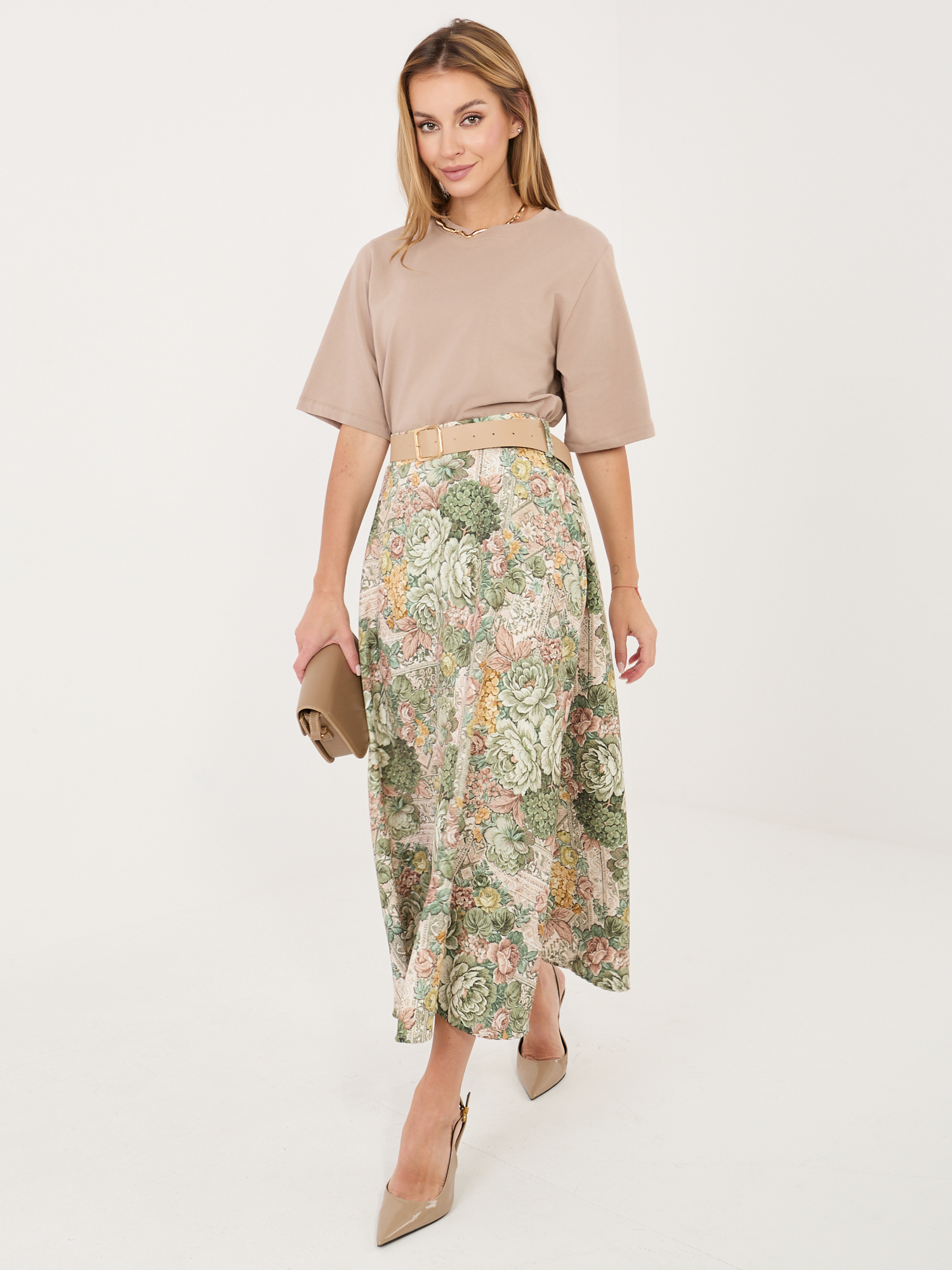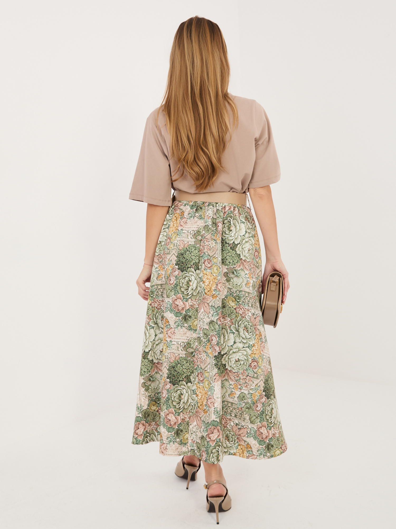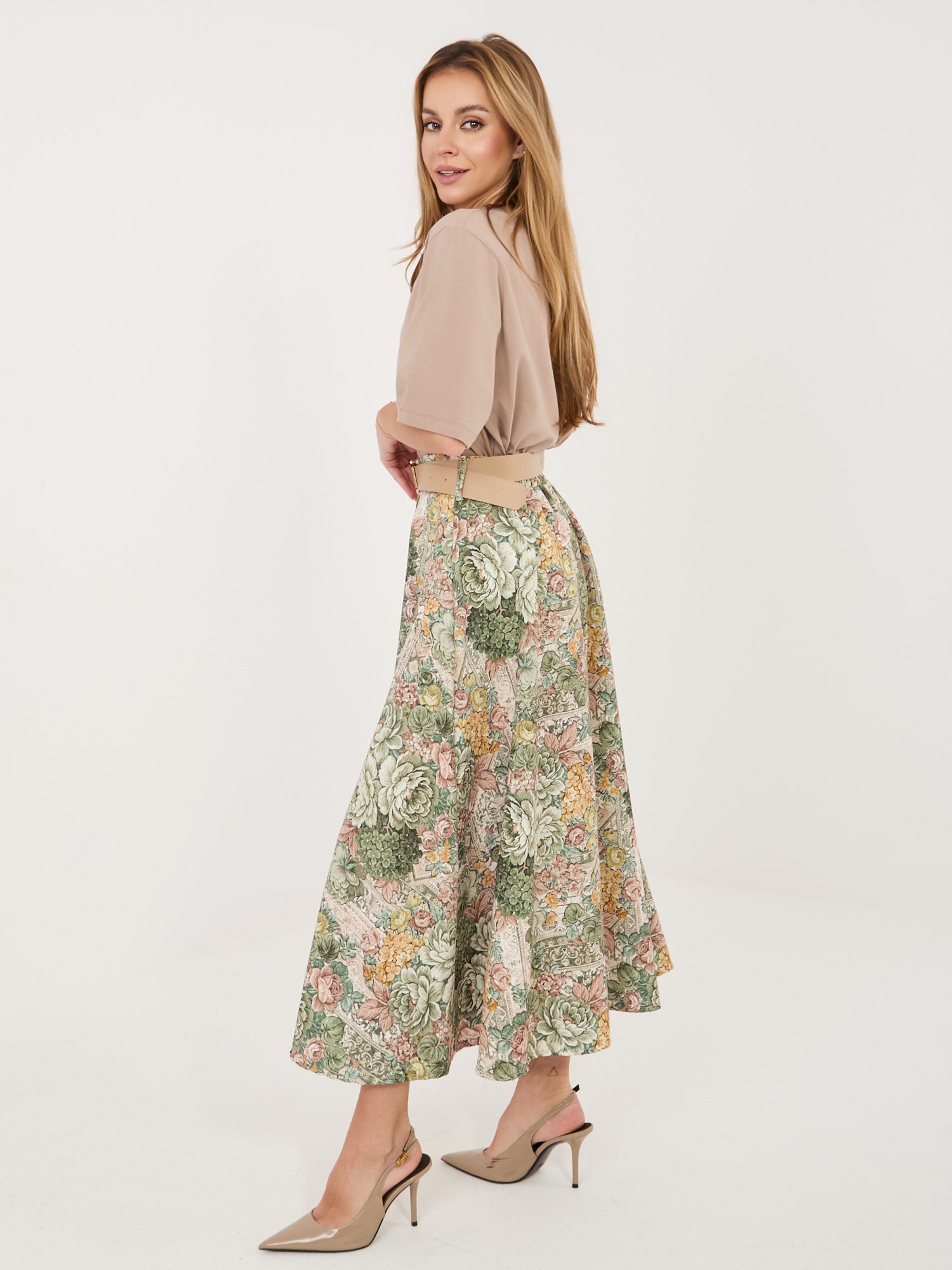 Zielona rozkloszowana spódnica z paskiem