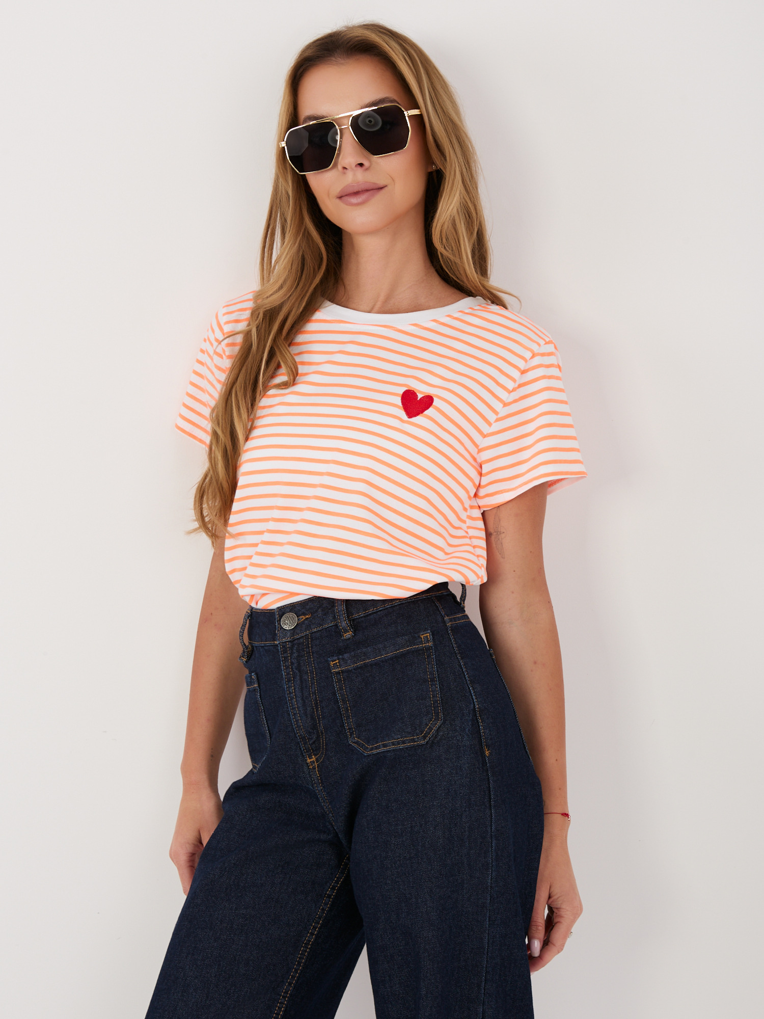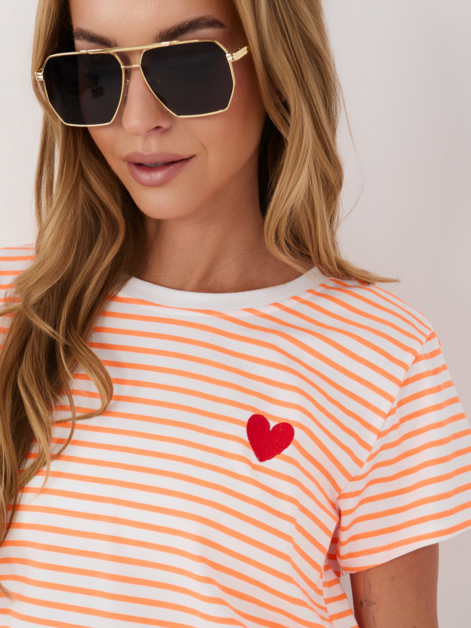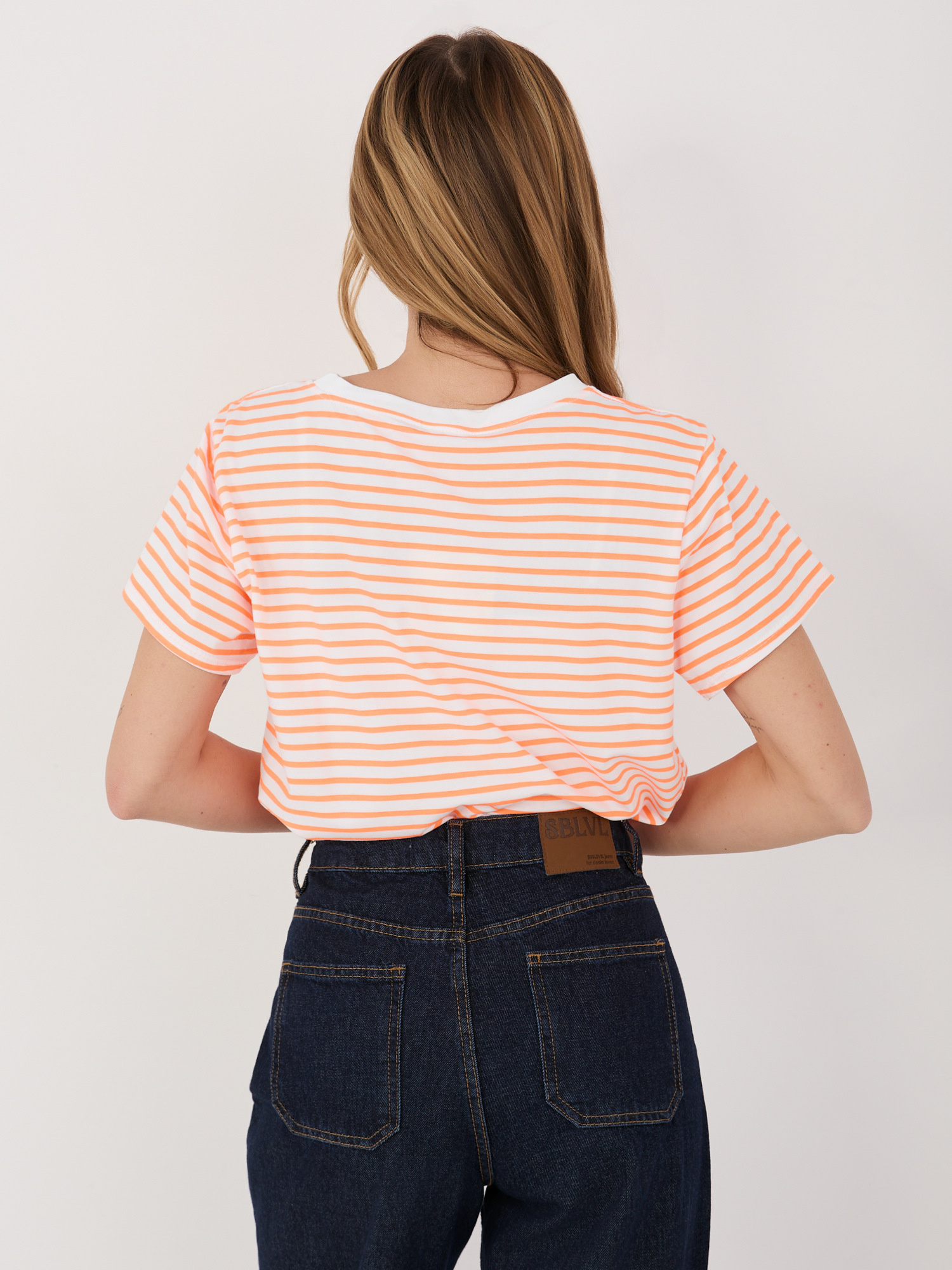 Biało-pomarańczowy damski t-shirt z bawełny .