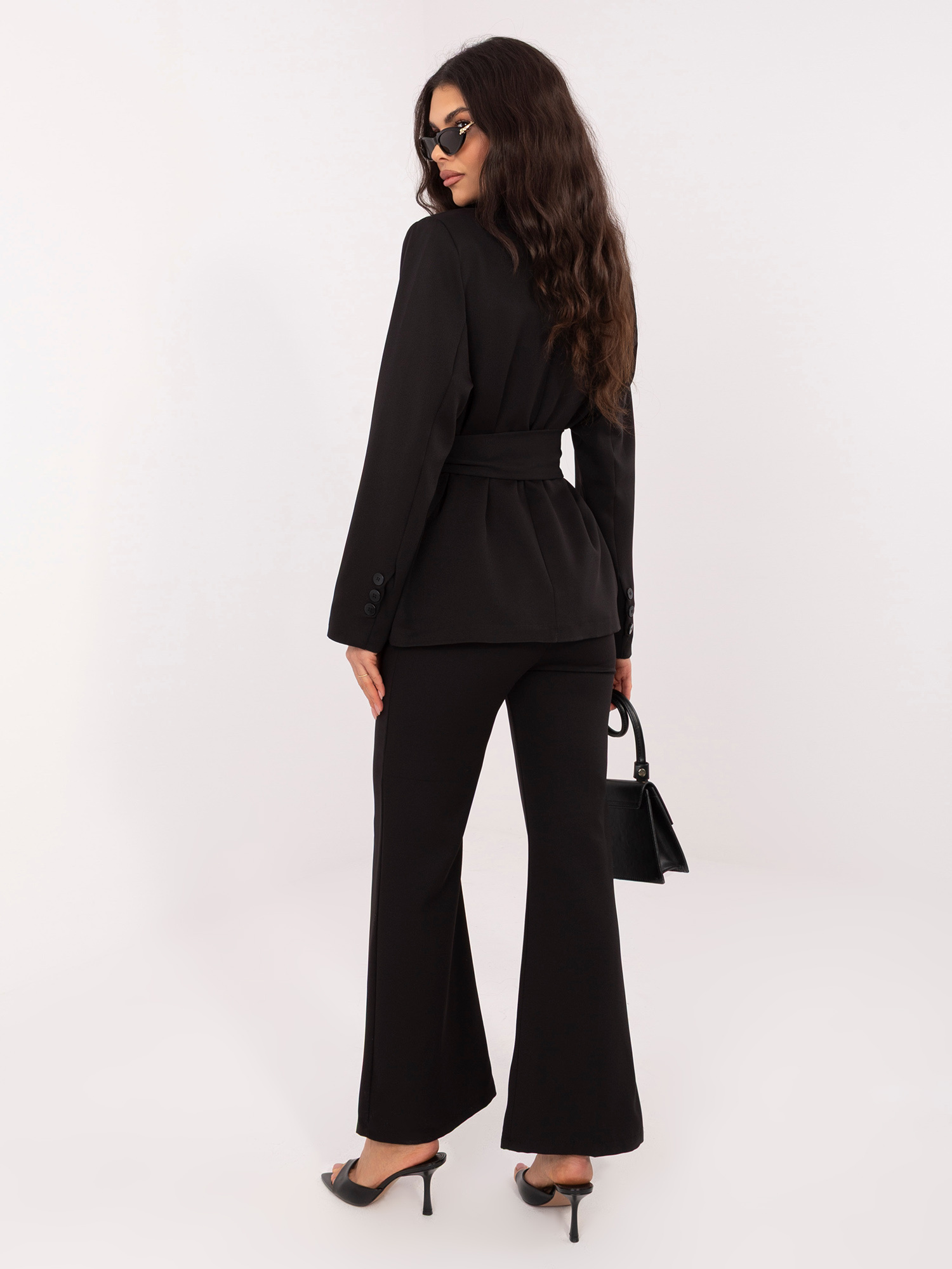 Czarny dwuczęściowy garnitur z rozszerzanymi spodniami