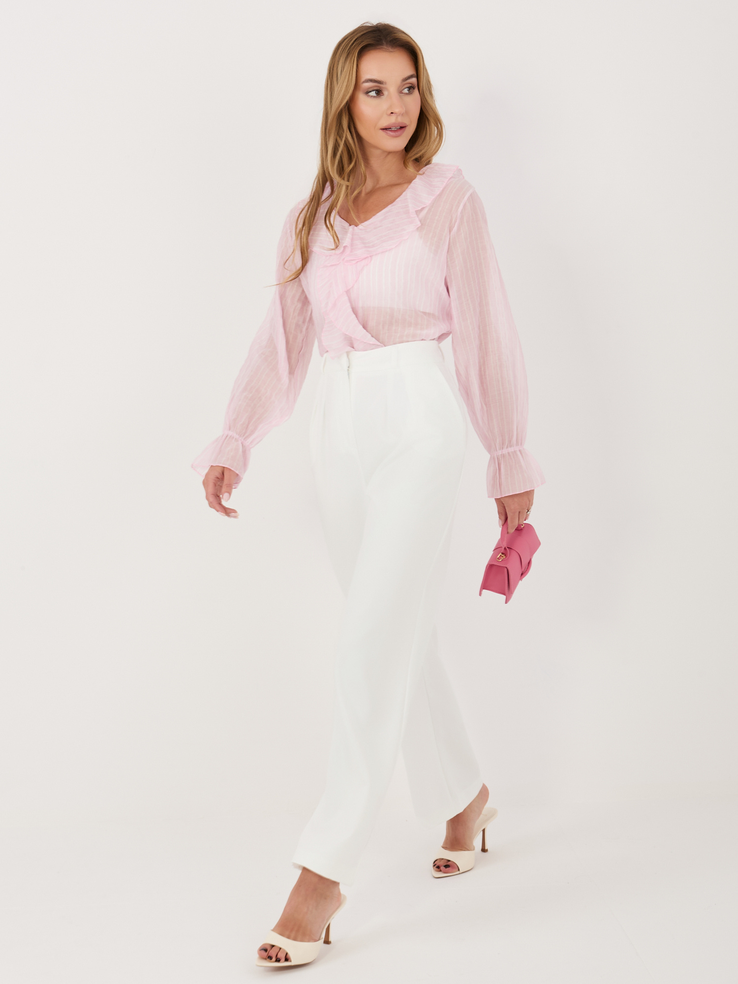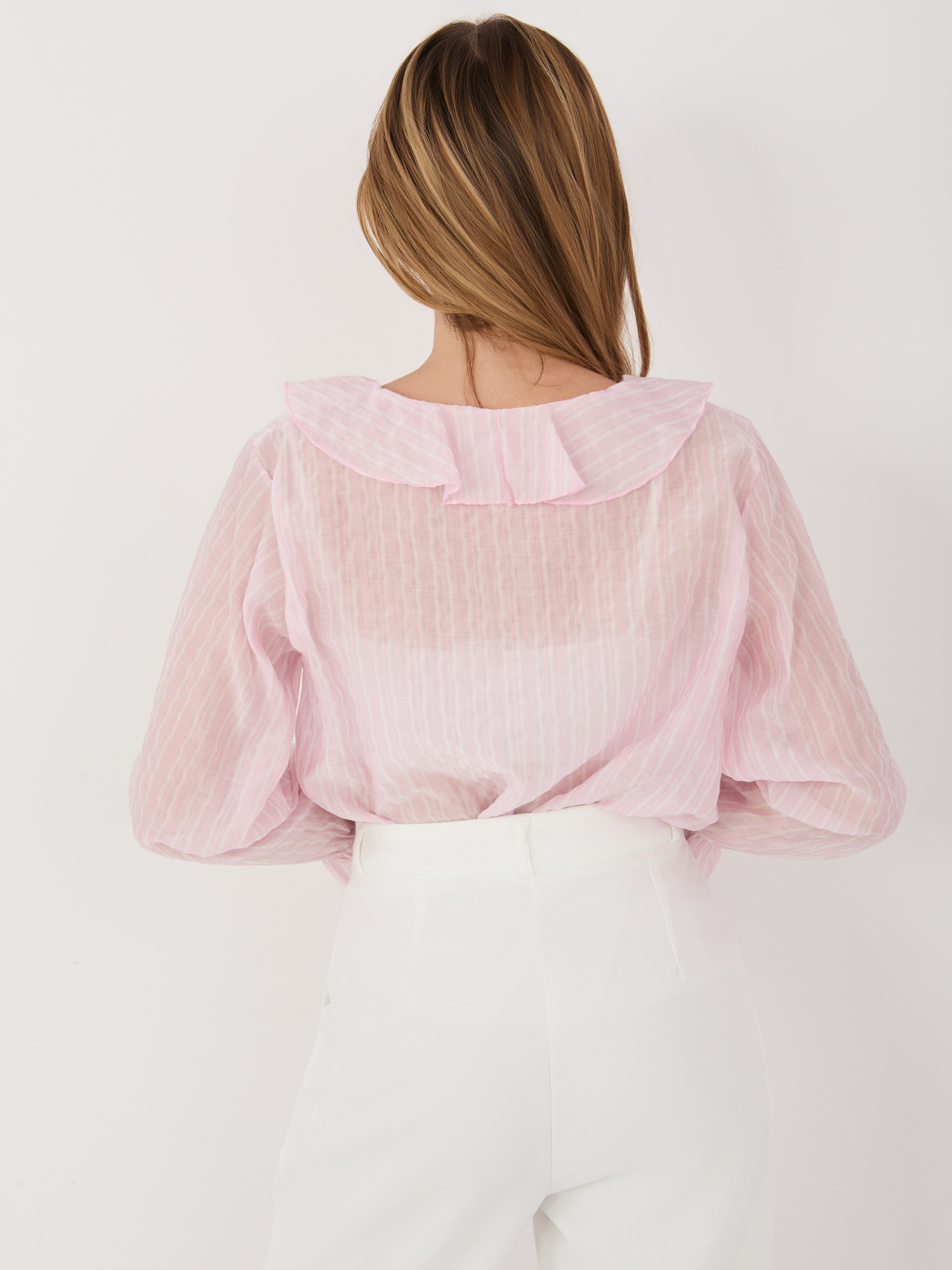 Jasnoróżowa elegancka bluzka z rękawem typu dzwon