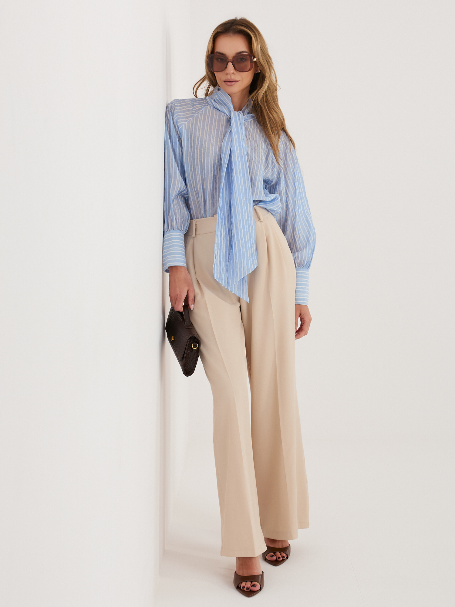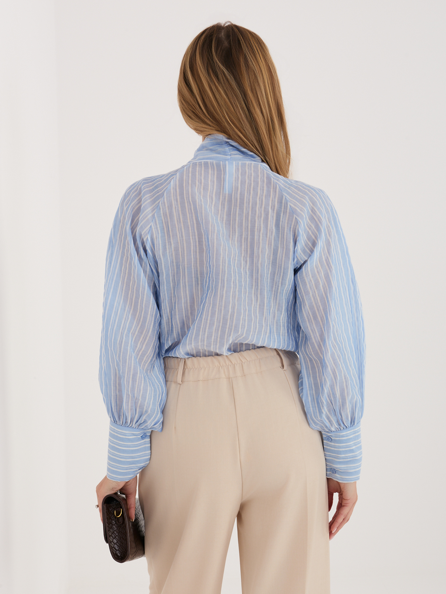 Jasnoniebieska prześwitująca koszula w paski .