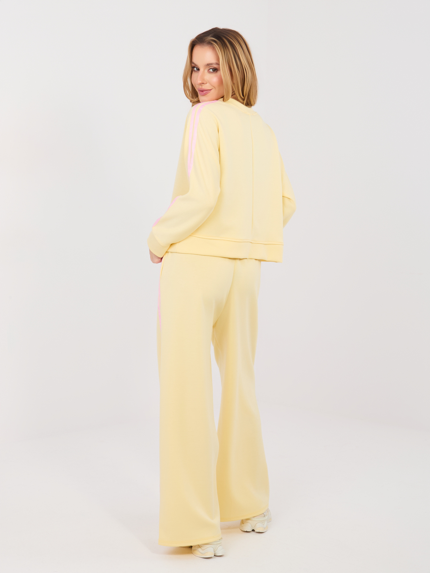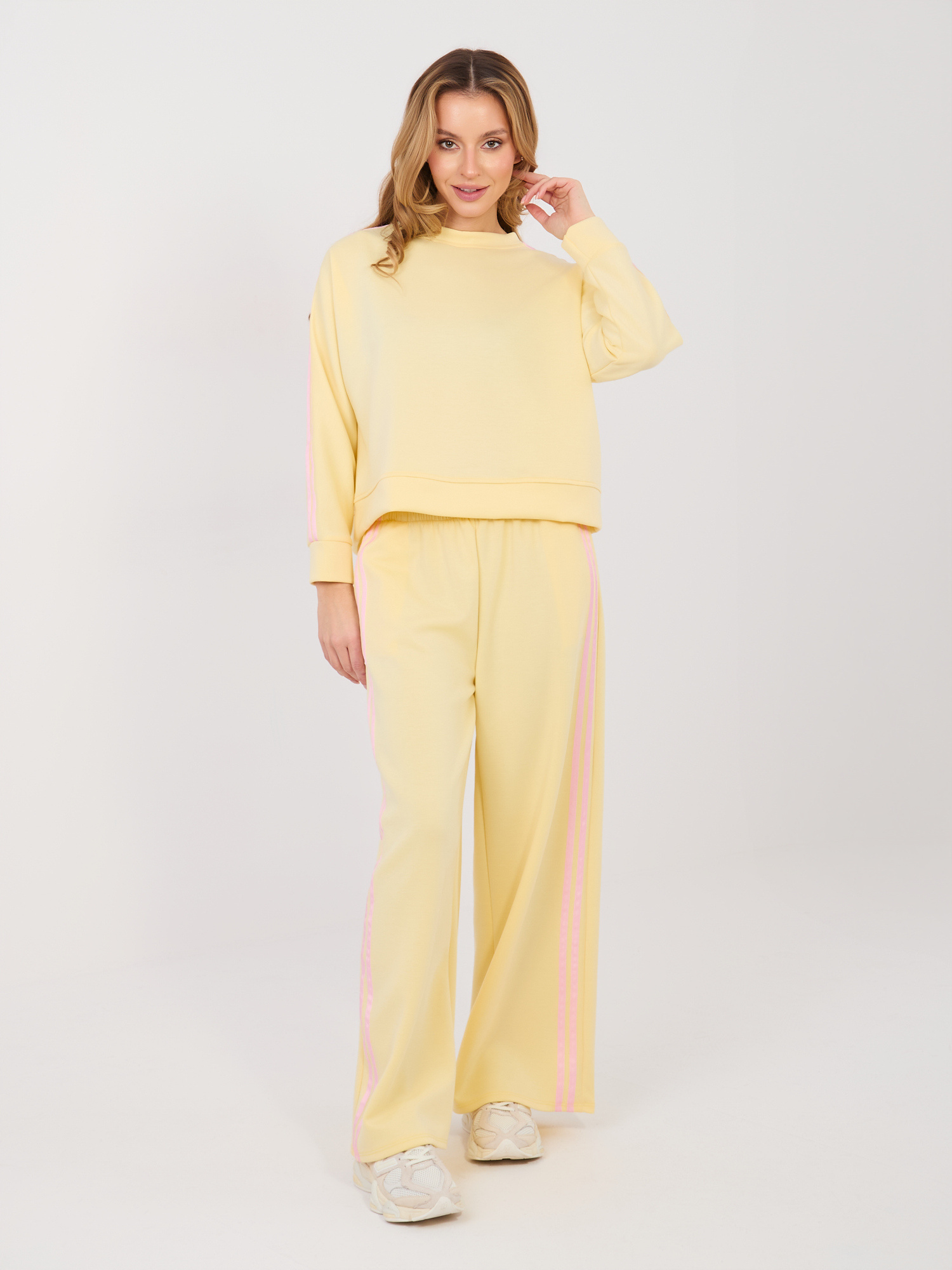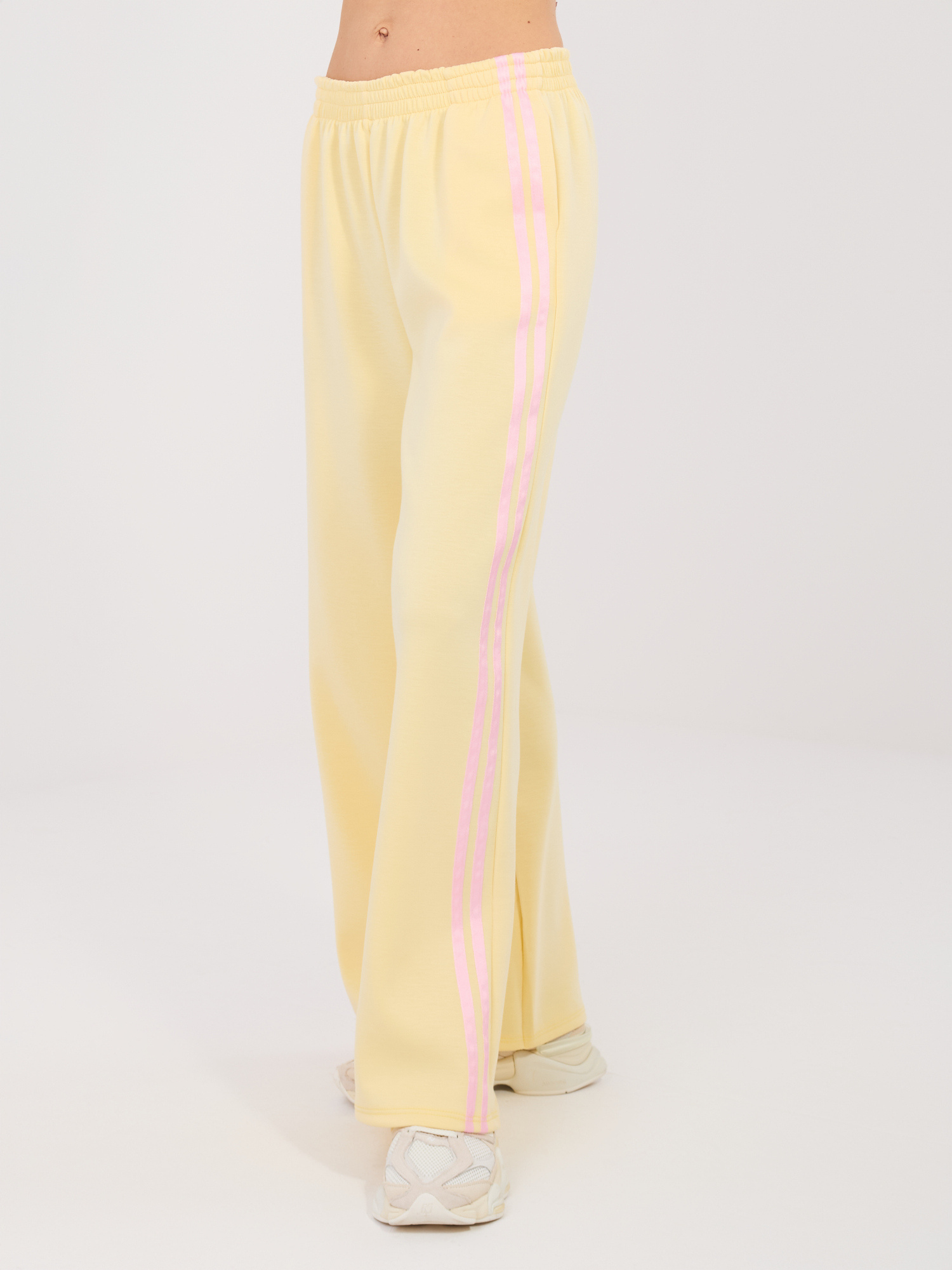 Jasnożółte szerokie spodnie z lampasami RUE PARIS .