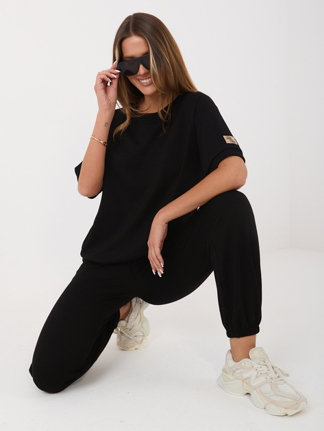 Czarny dwuczęściowy komplet z naszywką RUE PARIS .