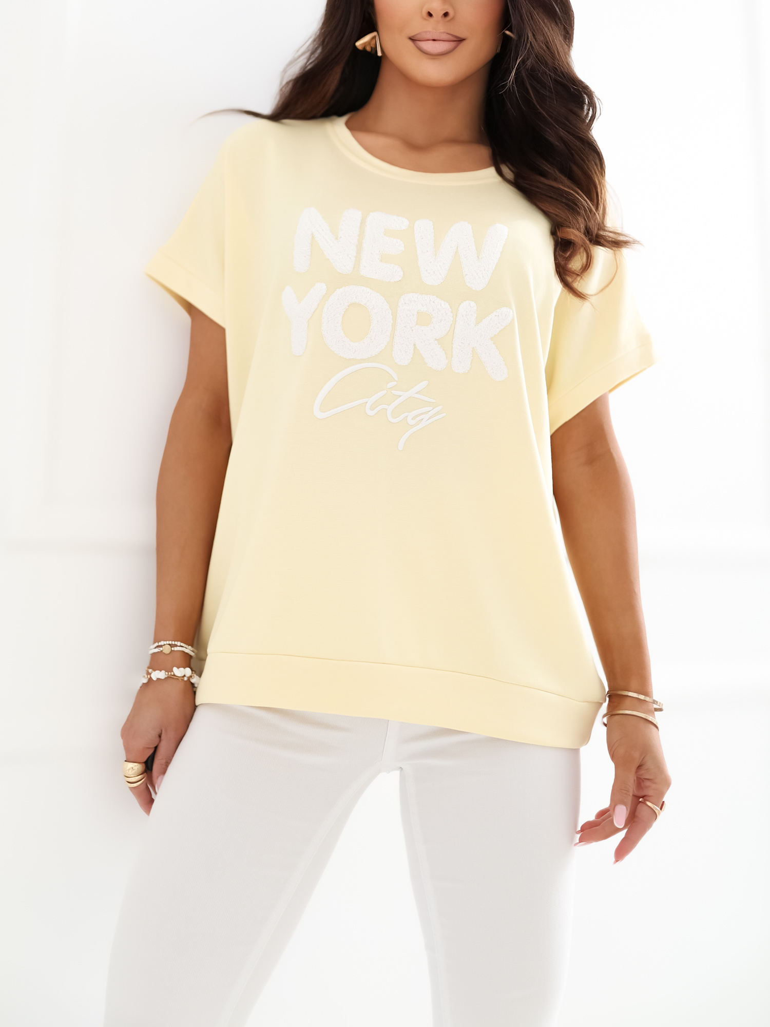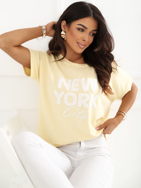 Jasnożółta bluzka oversize z krótkim rękawem RUE PARIS .