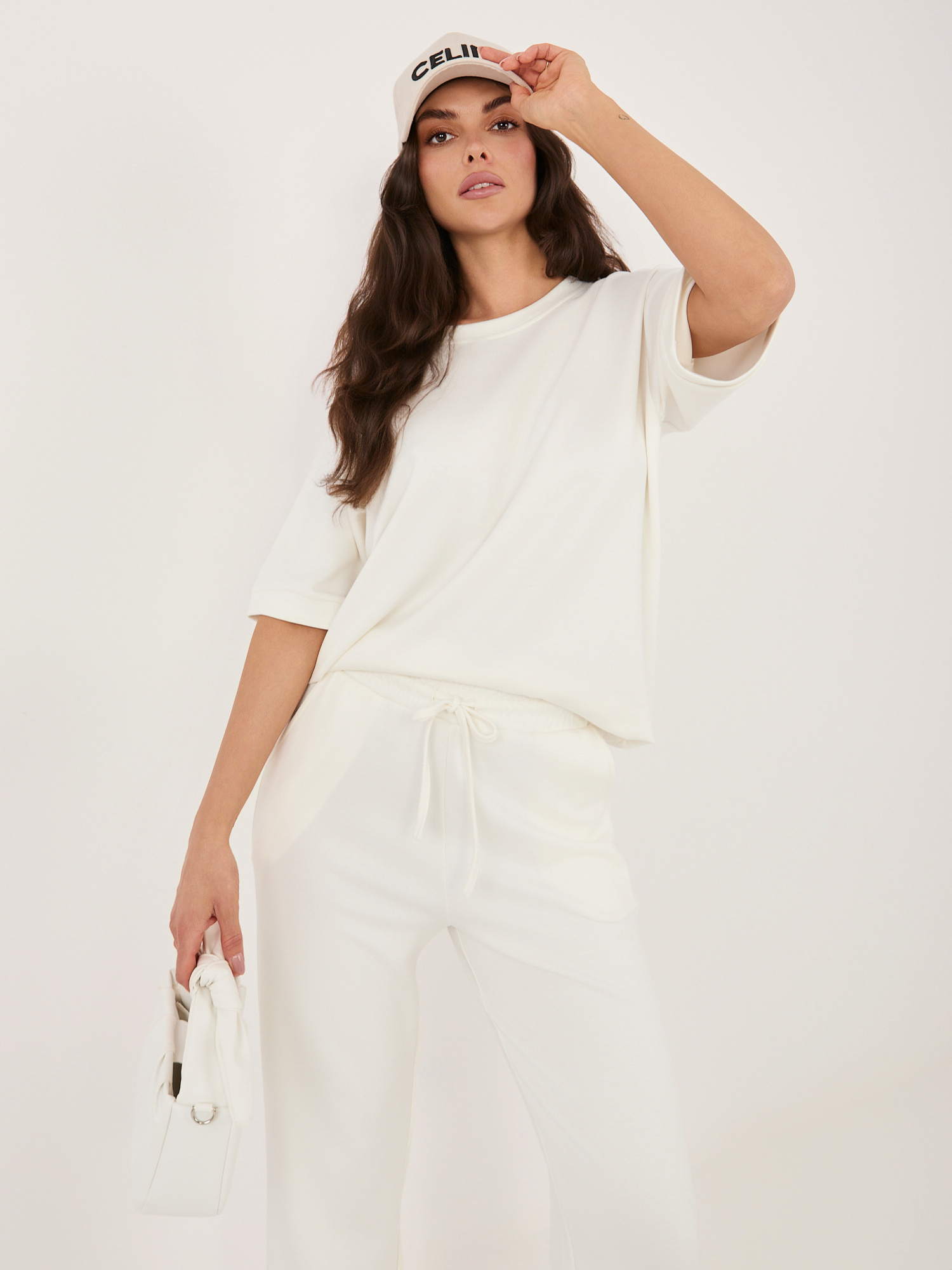 Ecru dresowy komplet ze spodniami typu jogger RUE PARIS .