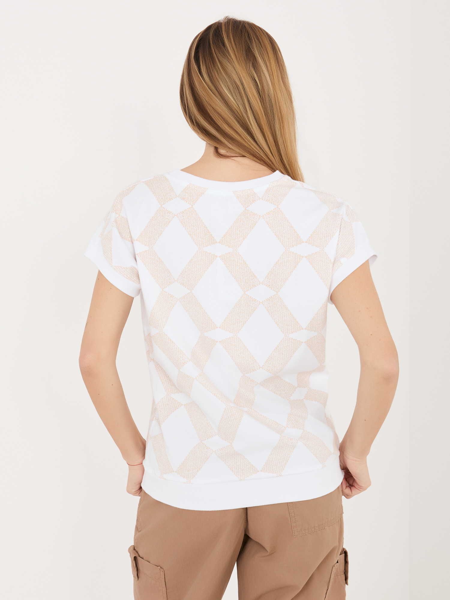 Beżowa bawełniana bluzka w romby .