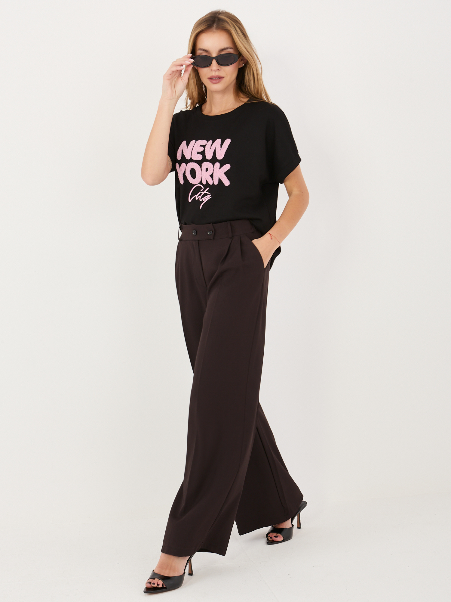 Czarna damska bluzka z napisem New York RUE PARIS .
