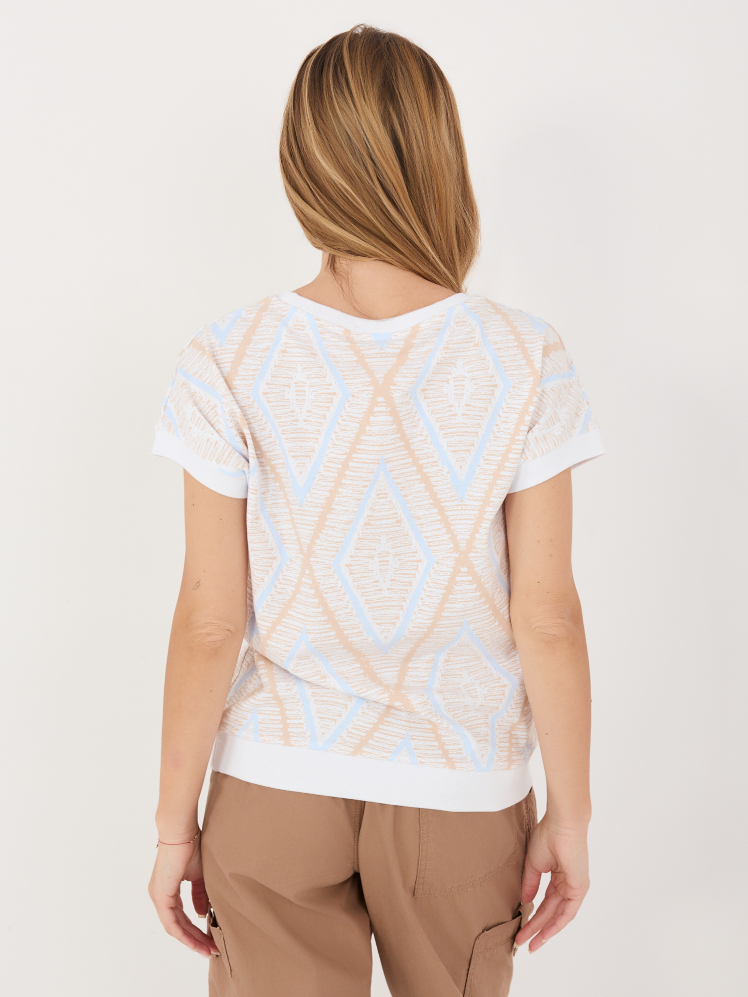 Beżowa bawełniana bluzka z krótkim rękawem .
