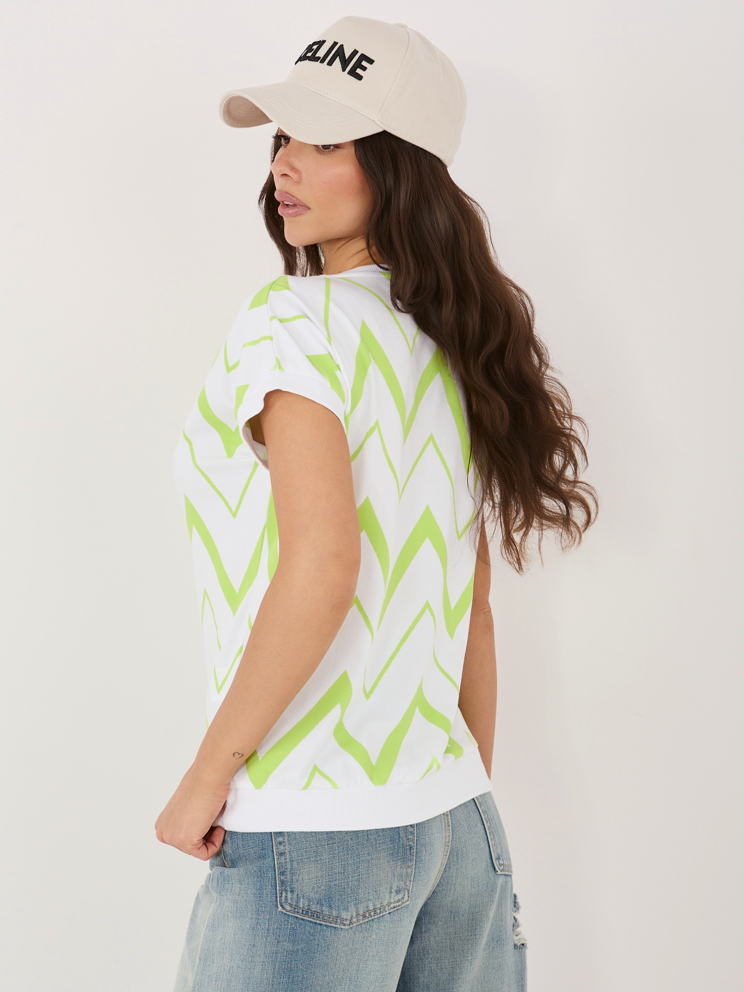 Pistacjowa bawełniana bluzka z nadrukiem .