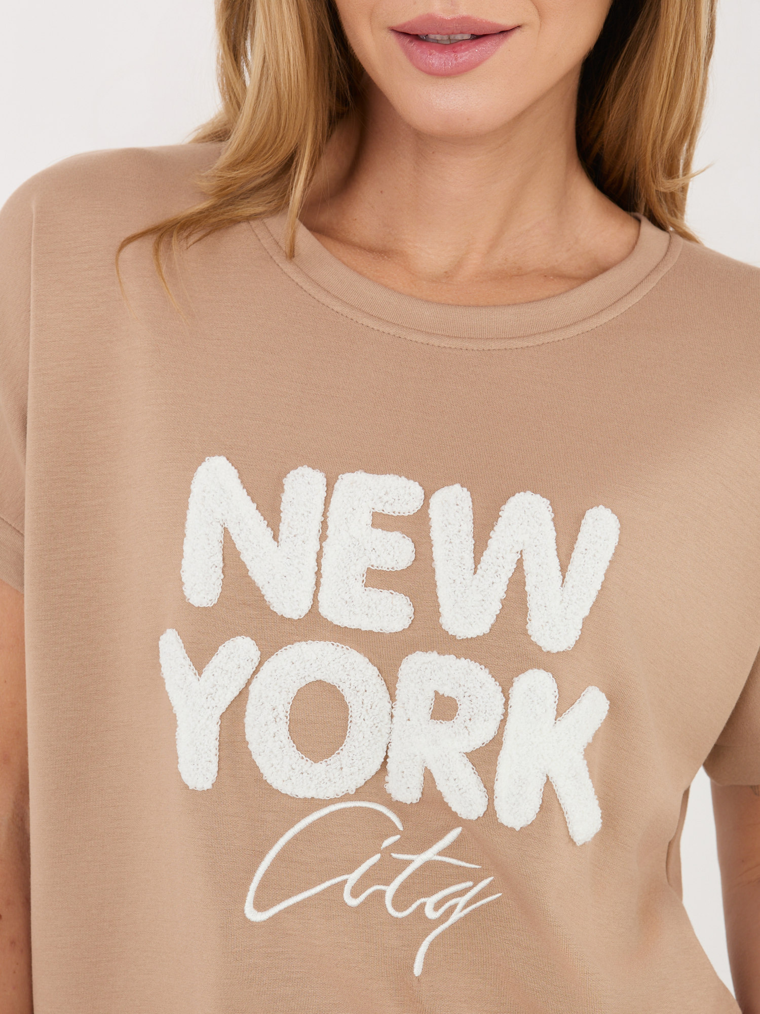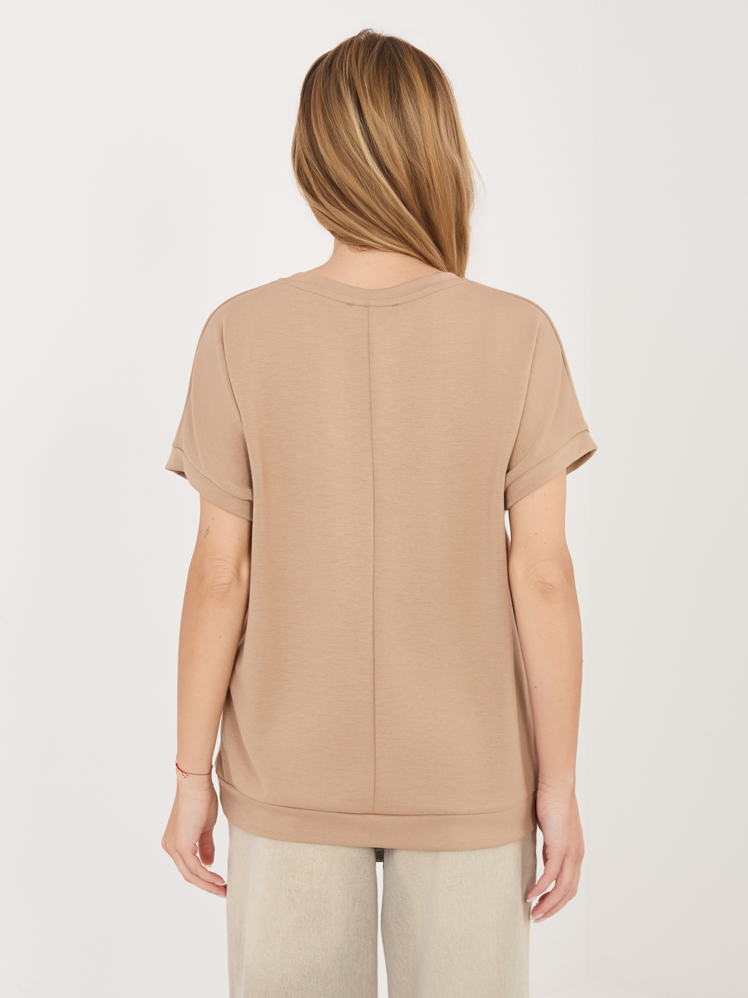 Ciemnobeżowa damska bluzka z krótkim rękawem RUE PARIS .