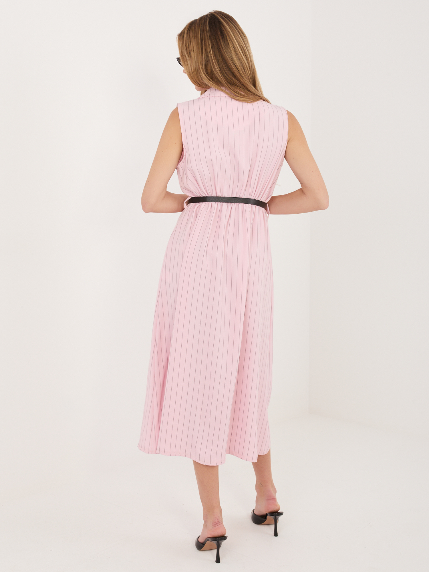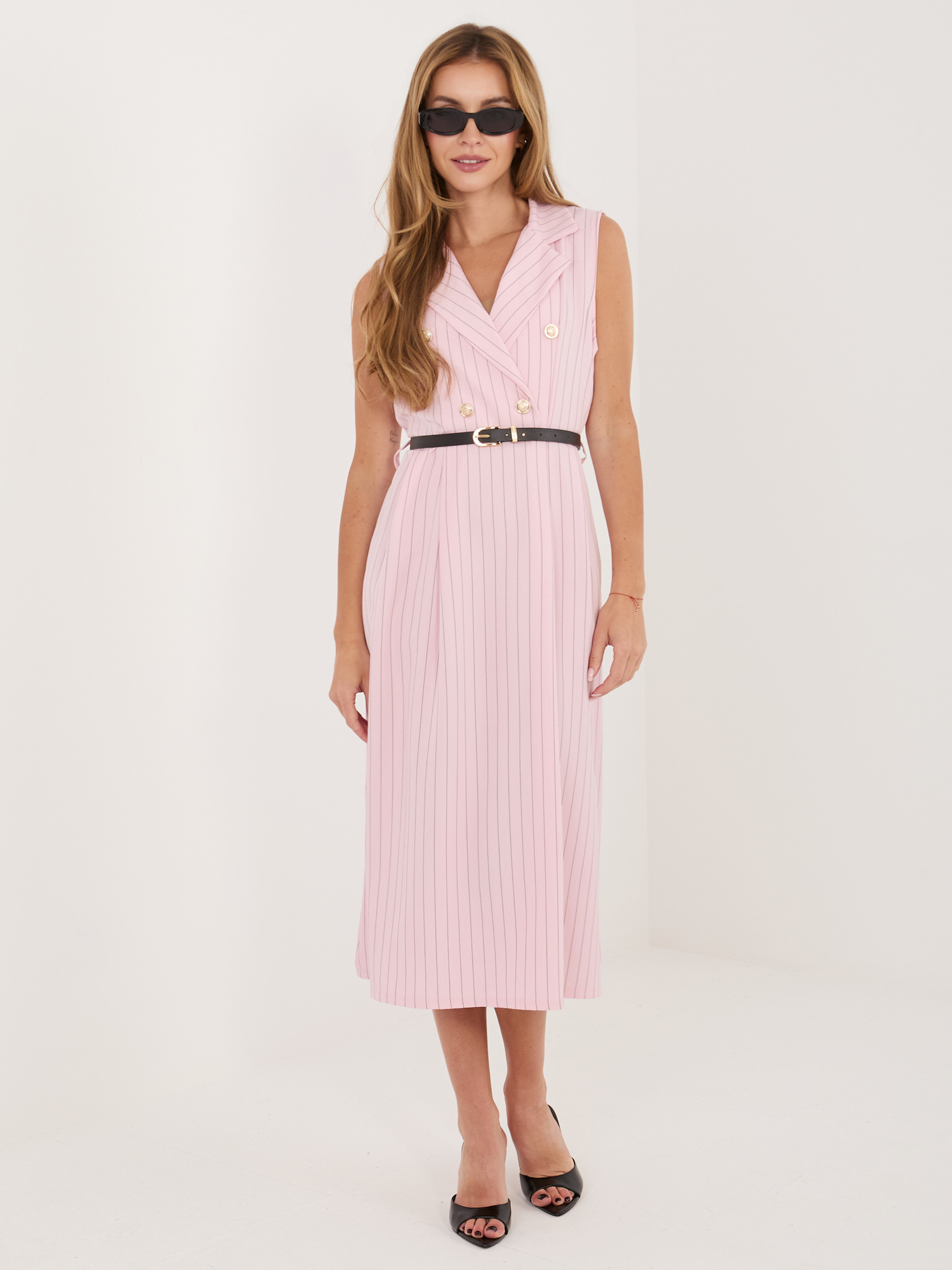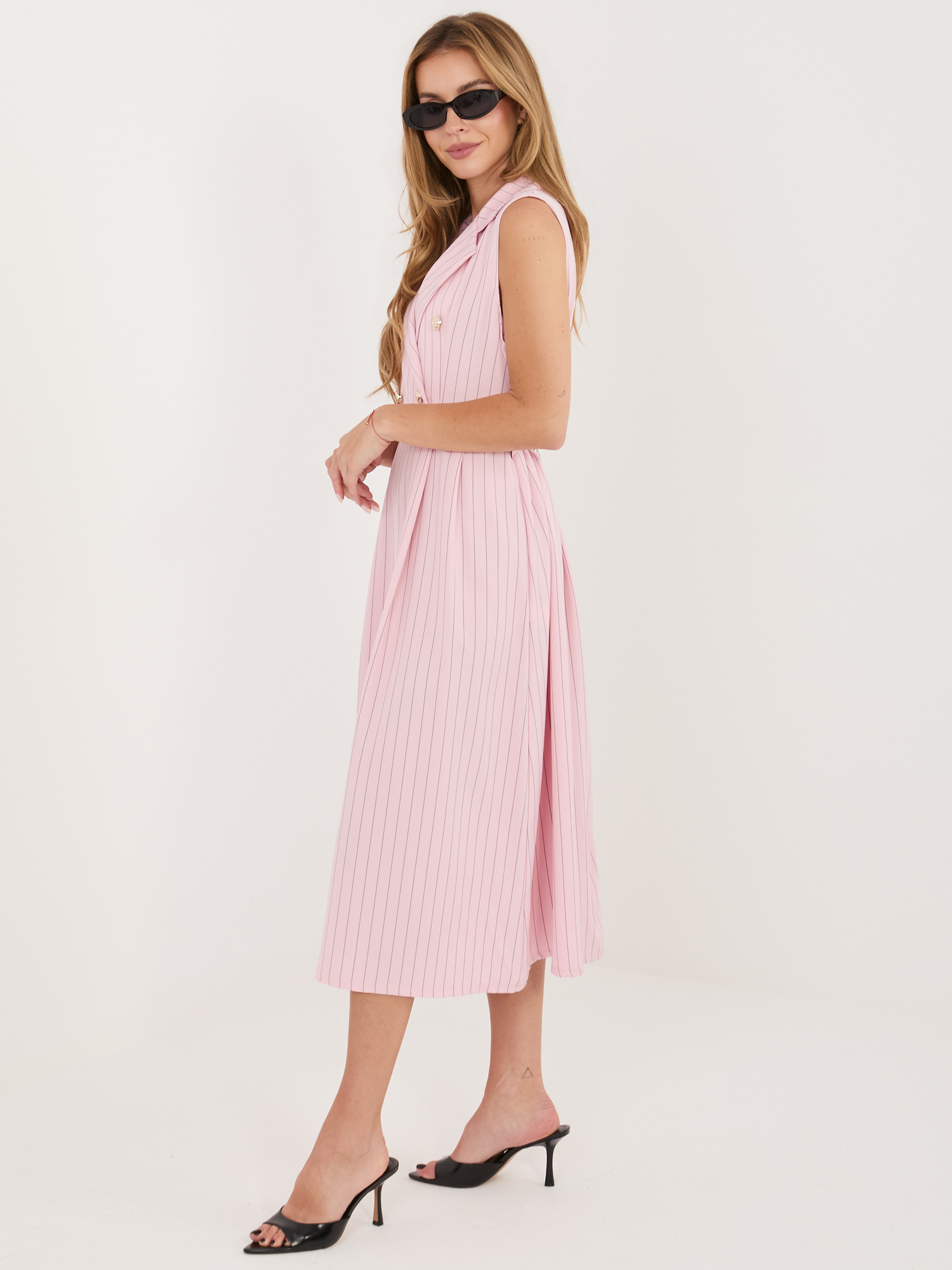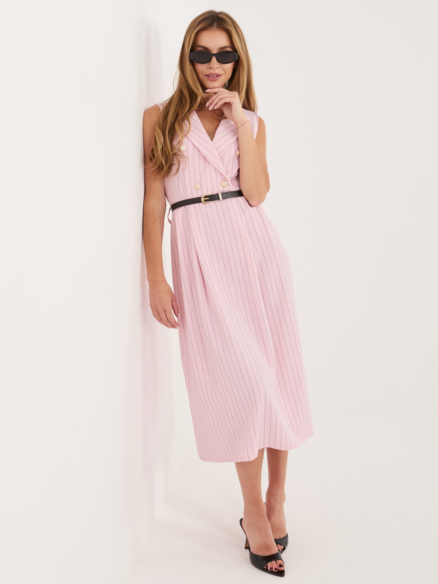 Jasnoróżowa garniturowa sukienka w paski