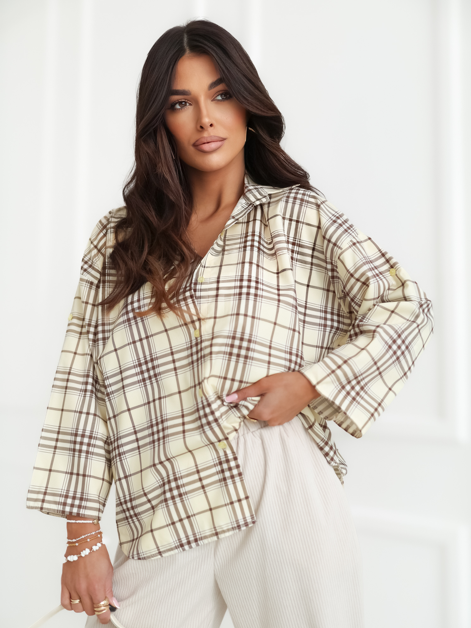 Jasnożółta damska koszula z rękawem 7/8 .
