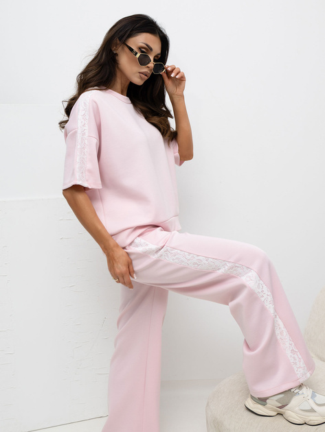 Jasnoróżowe dresowe spodnie z wiązaniem