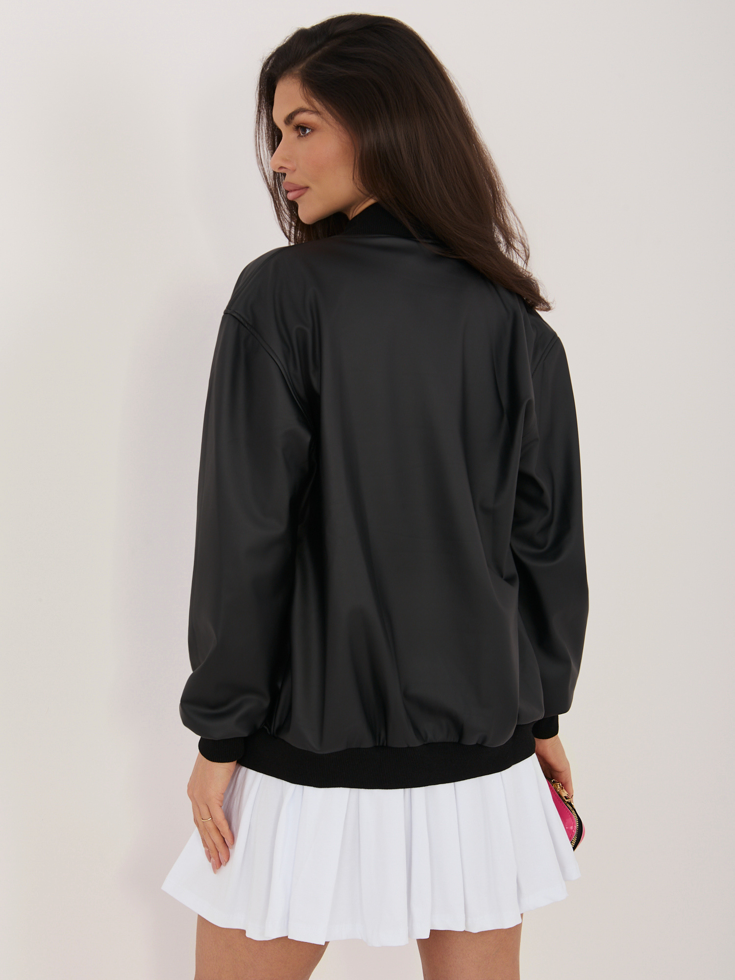 Czarna skórzana kurtka z welurową podszewką .
