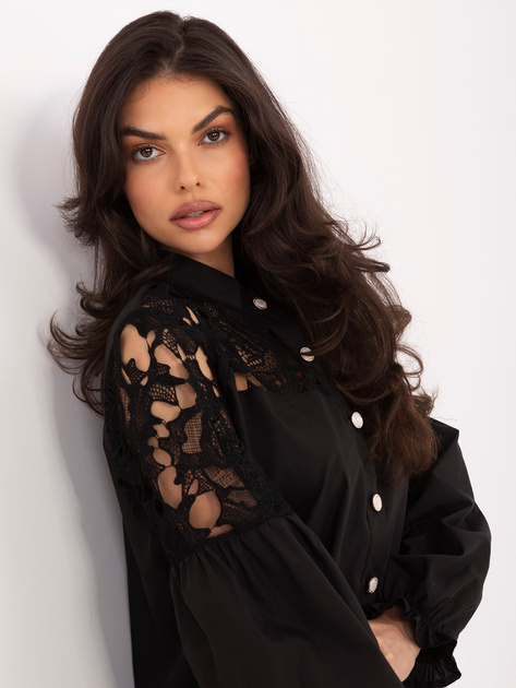 Czarna elegancka koszula z koronkową wstawką .