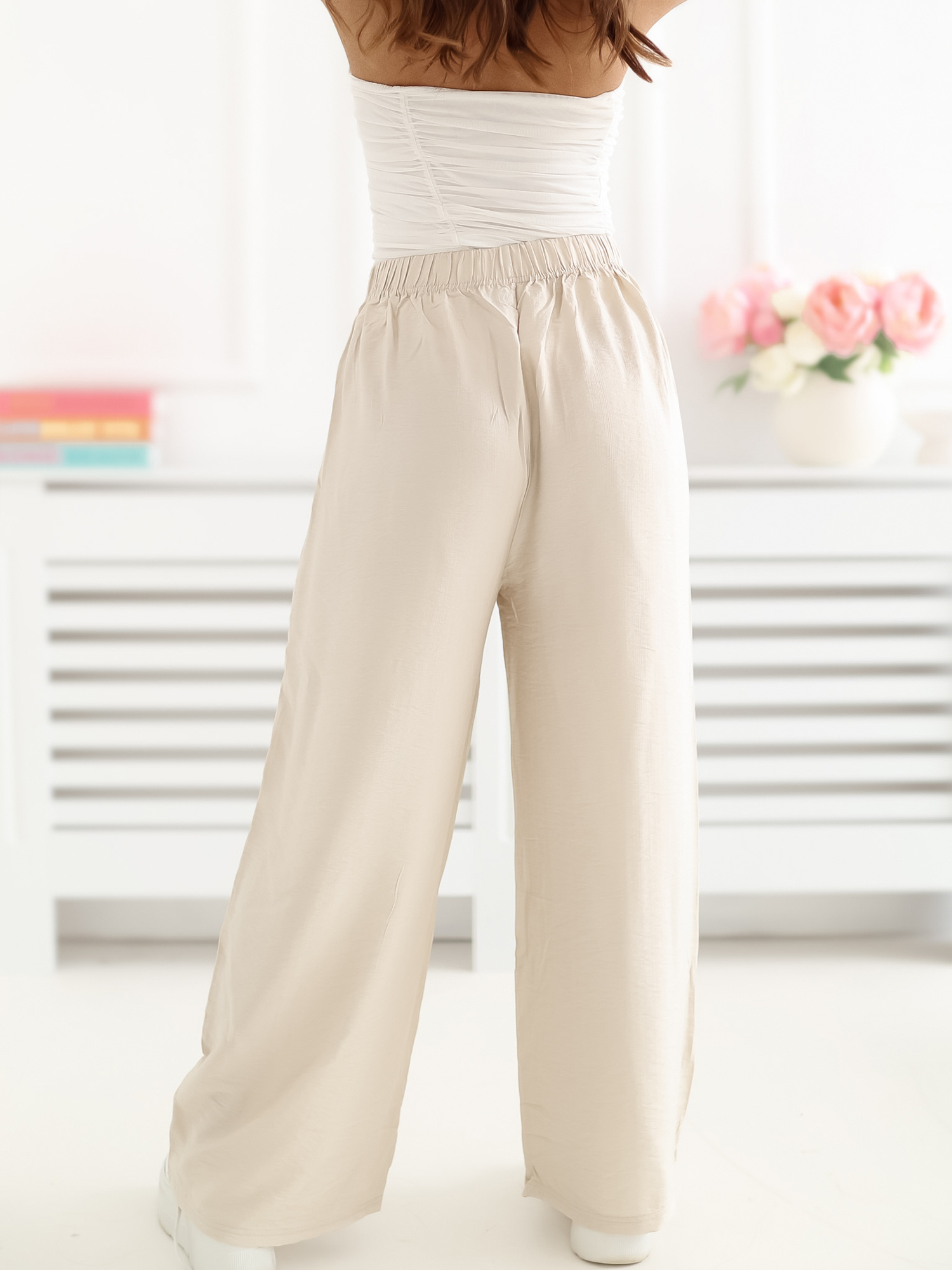 Jasnobeżowe letnie spodnie wide leg