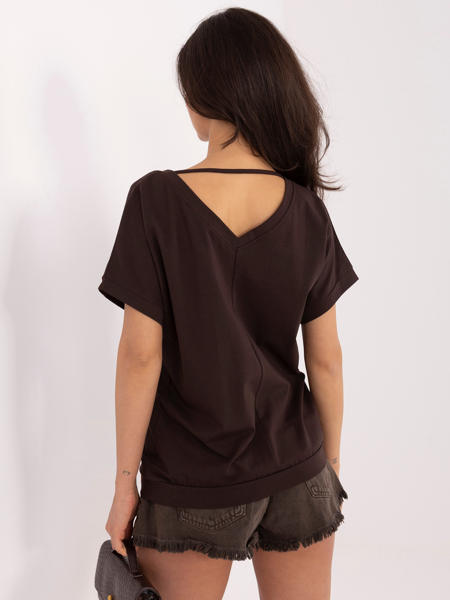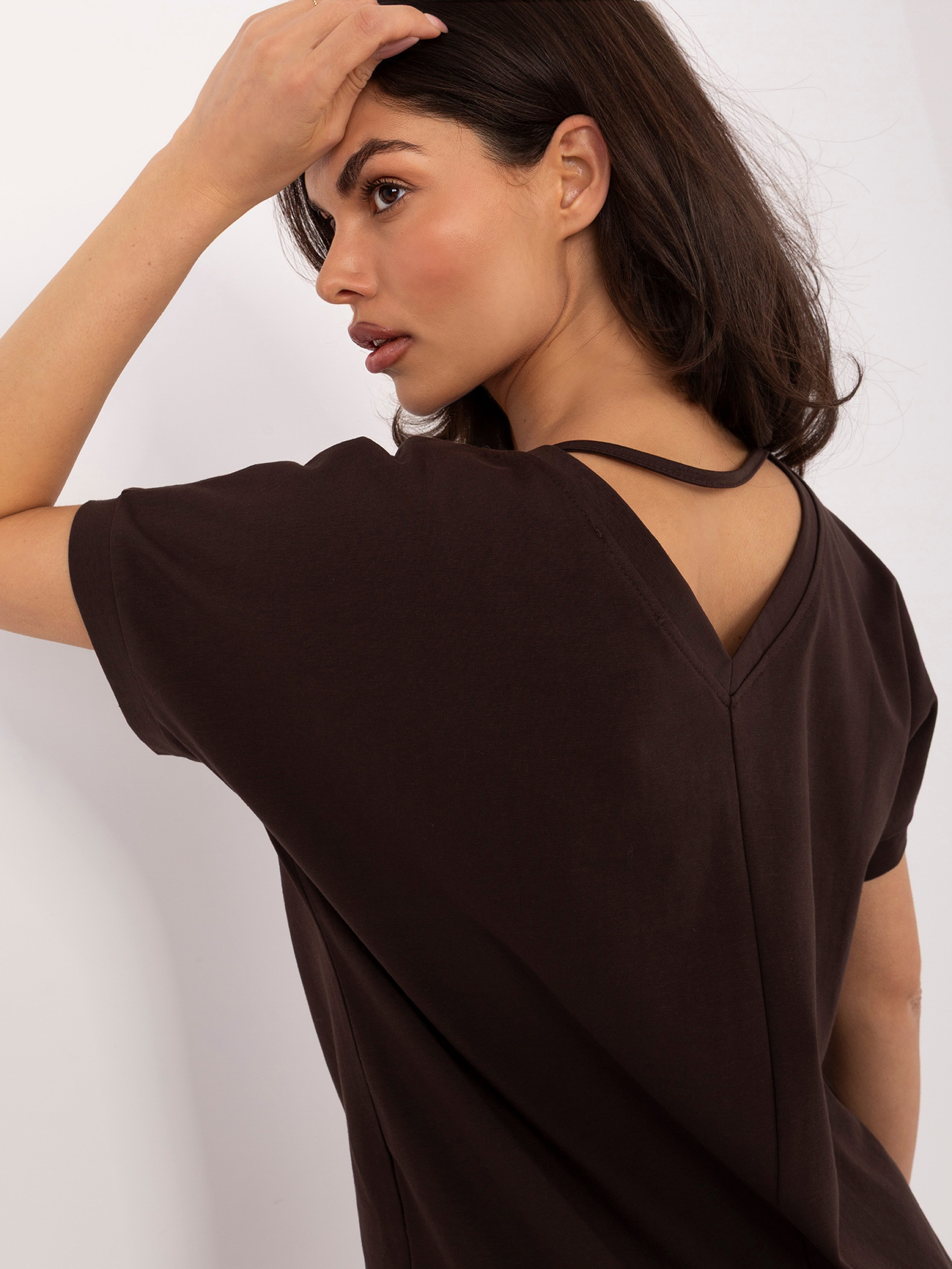 Ciemnobrązowa bluzka oversize z krótkim rękawem RUE PARIS .