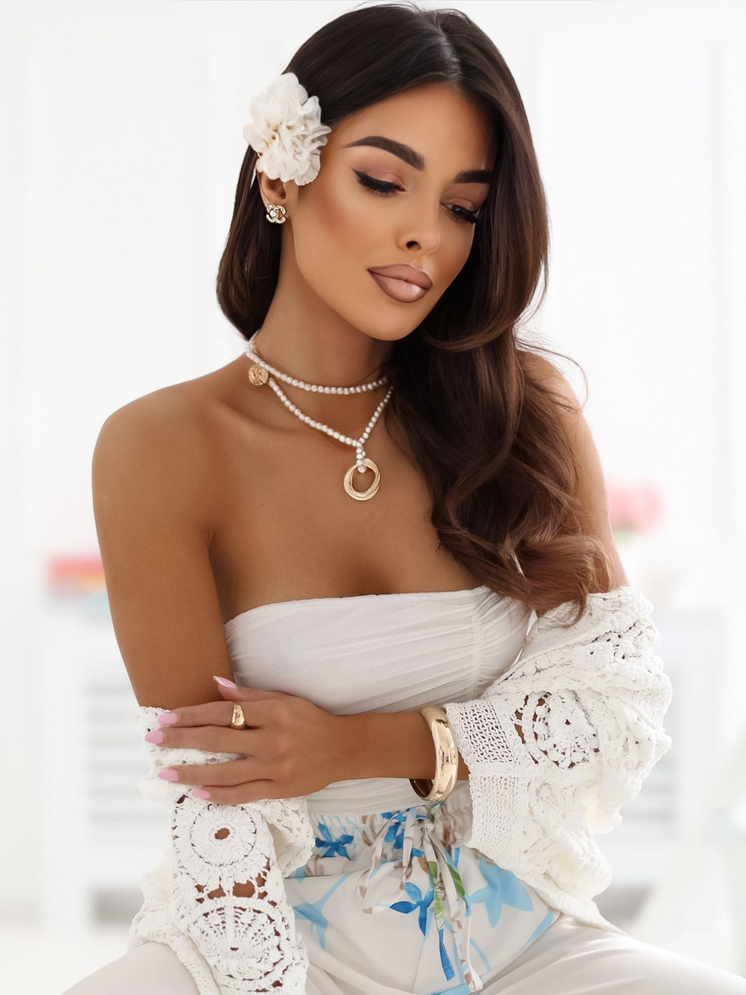 Ecru ażurowy sweter boho z rękawem 3/4 .