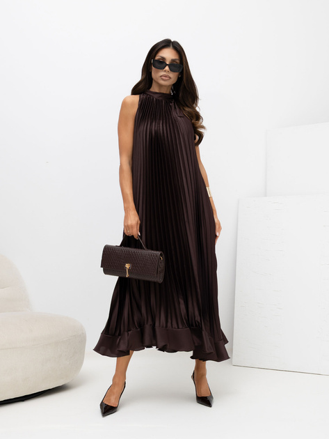 Czekoladowa midi sukienka z dekoltem halter RUE PARIS .