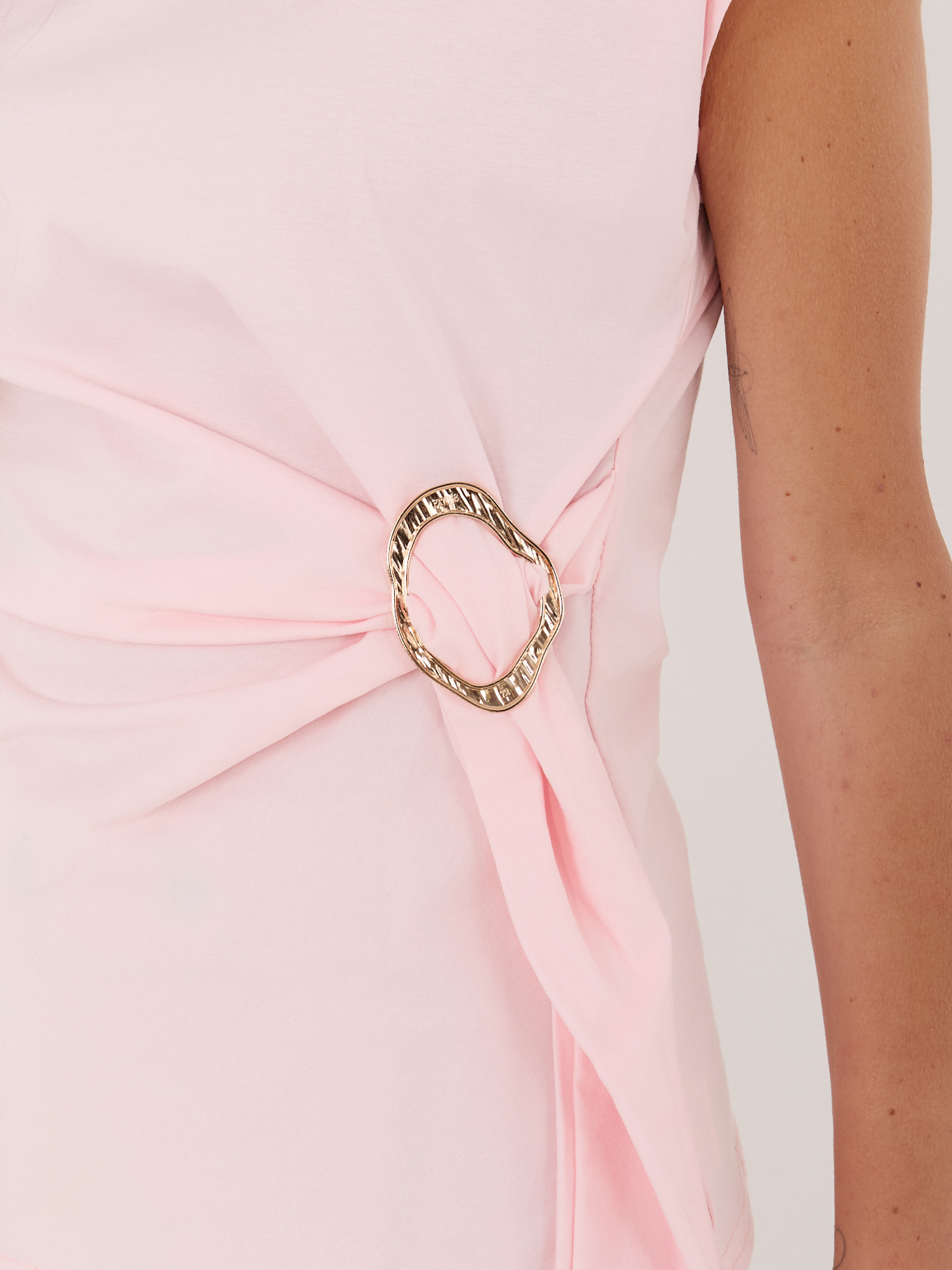 Jasnoróżowa elegancka bluzka z krótkim rękawem