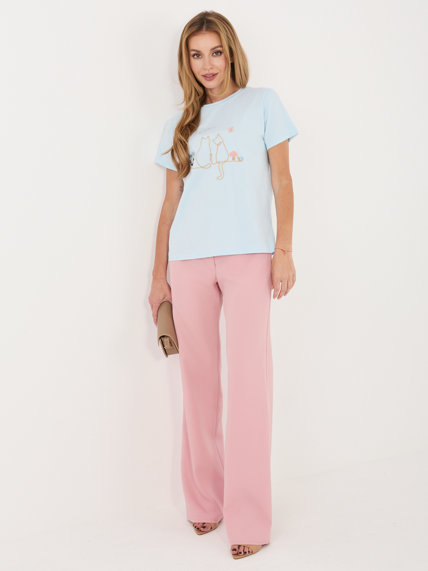 Jasnoniebieski damski t-shirt z bawełny .