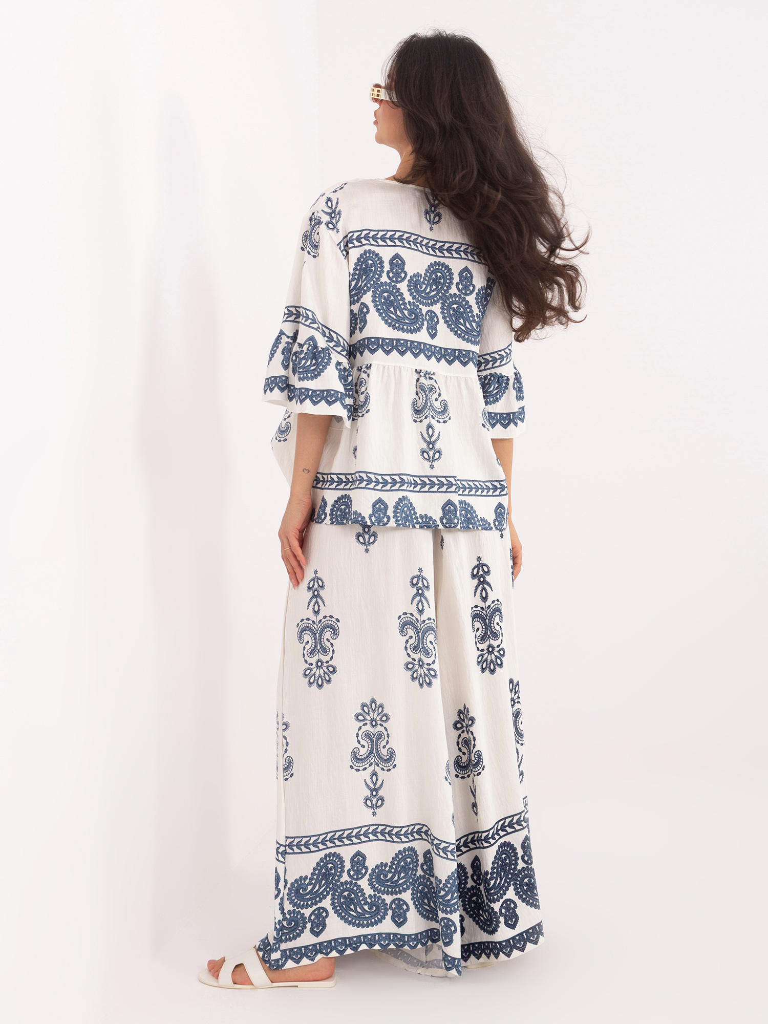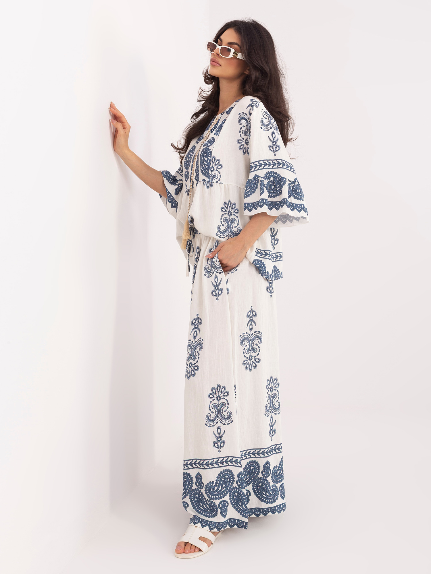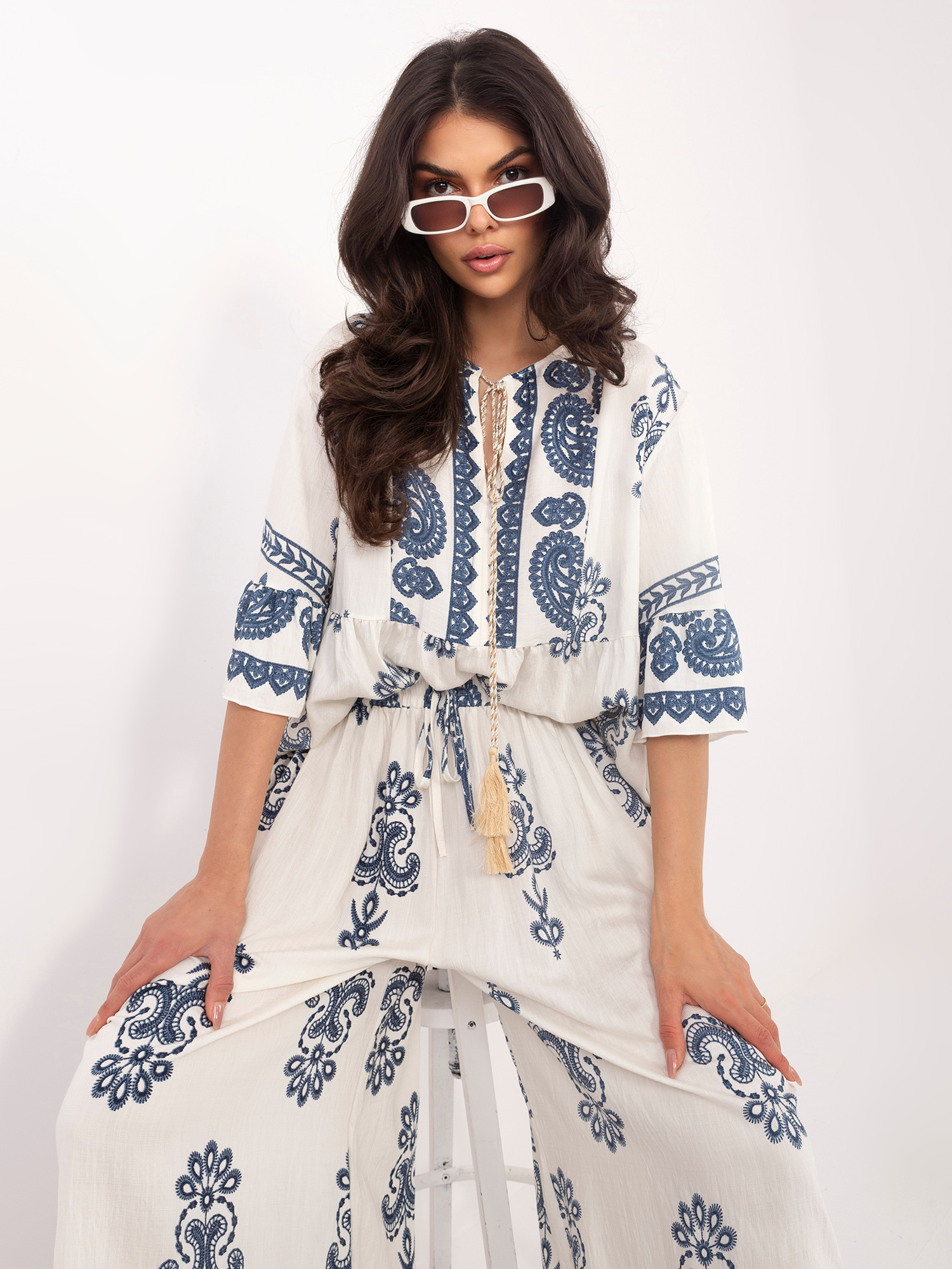 Ecru letni komplet z wiązaniem przy dekolcie .
