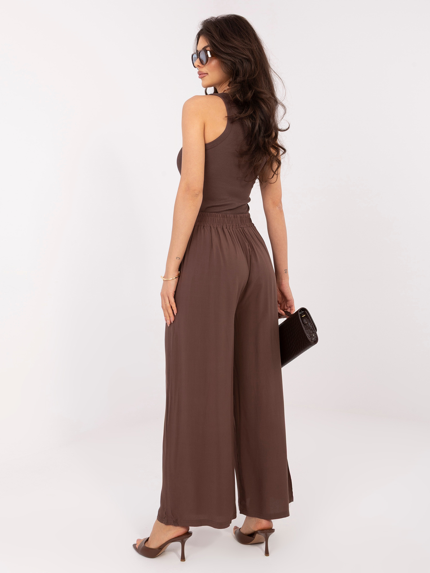 Brązowe letnie spodnie z wiskozy .