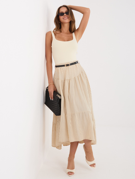 Beżowa rozkloszowana spódnica w kratkę