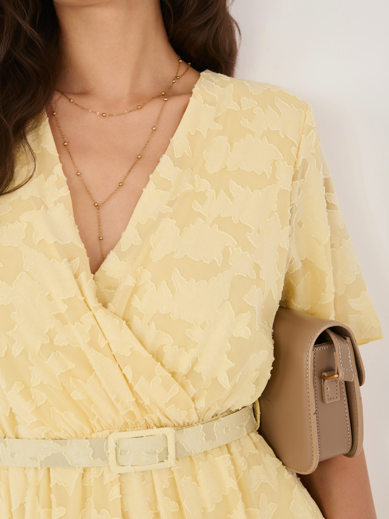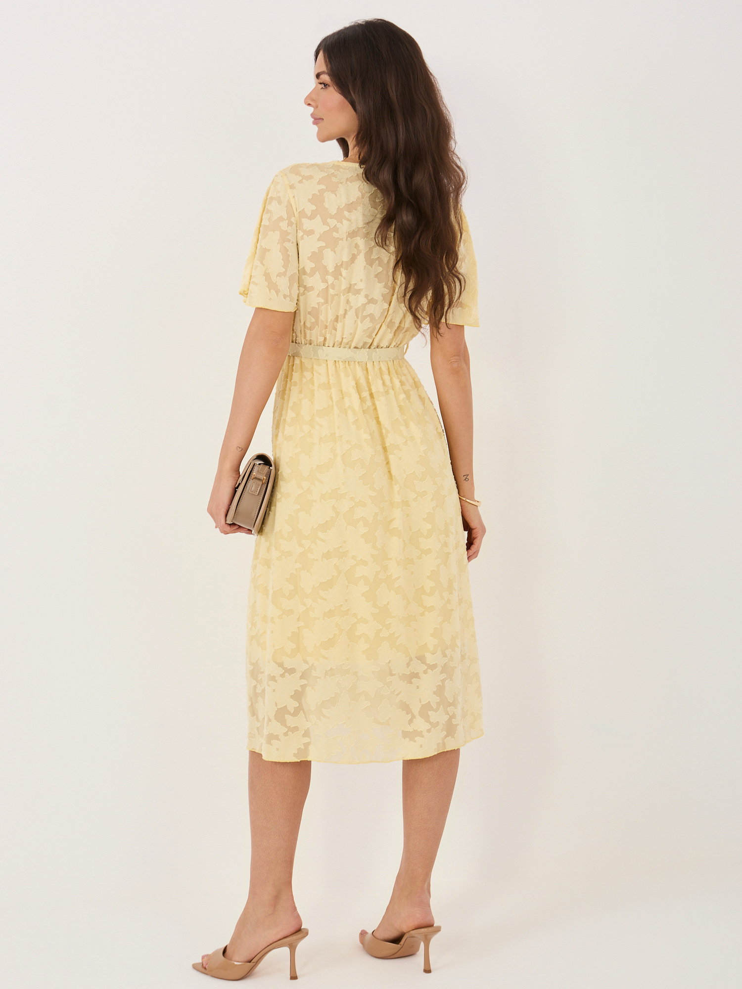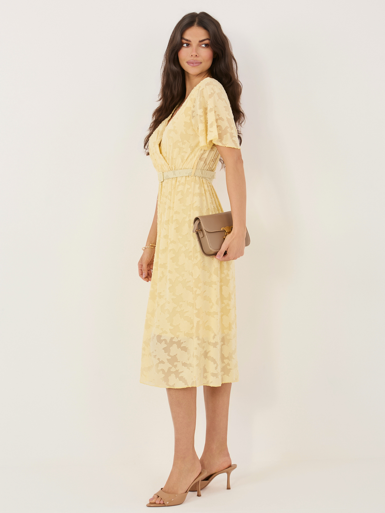 Jasnożółta elegancka sukienka z paskiem